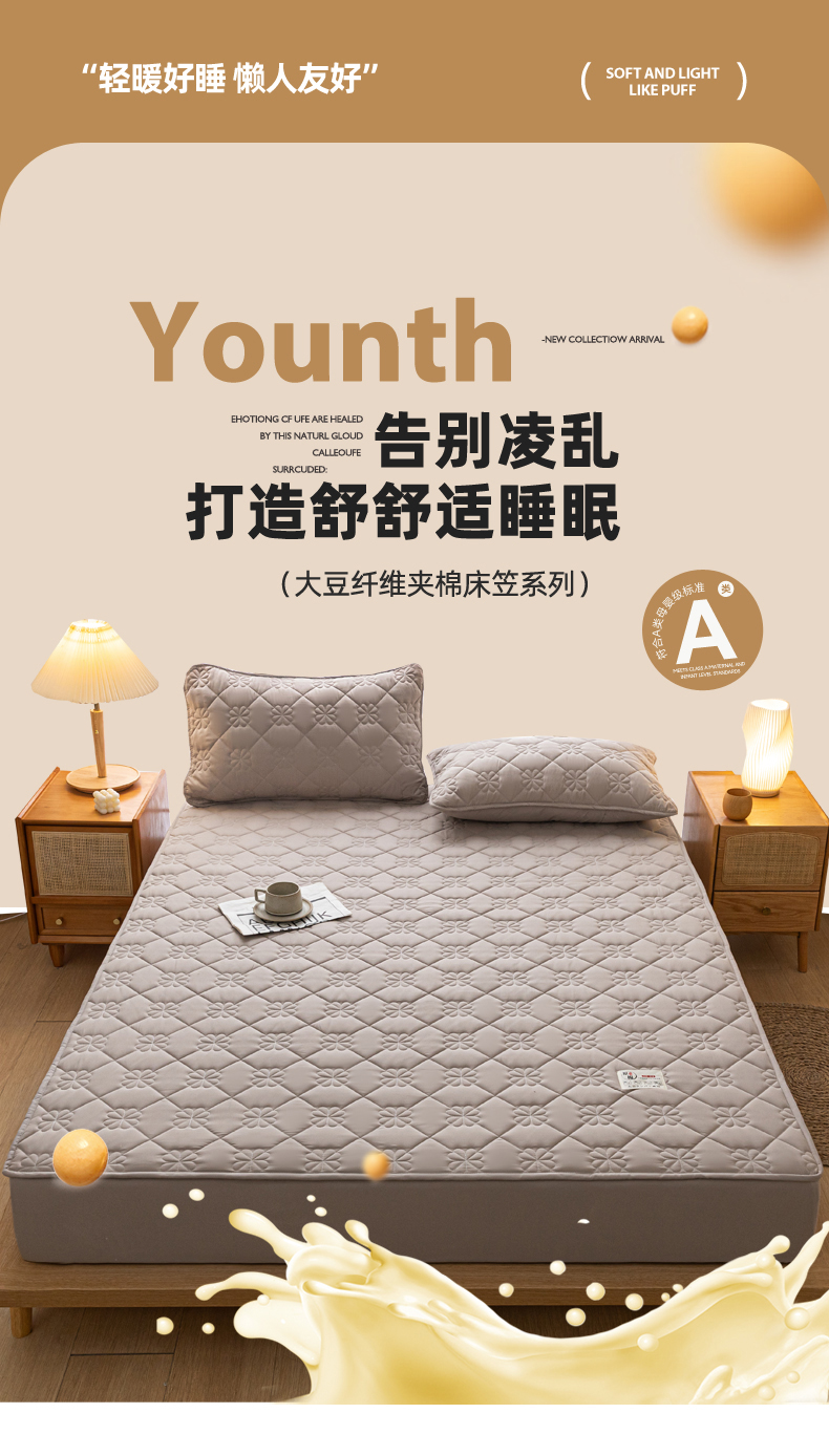 (总)米粒家纺 2023新款A类大豆纤维夹棉床笠系列,格调-白,格调-粉,格调-卡其,格调-蓝,格调-浅灰,格调-深灰,幸运花-白,幸运花-粉,幸运花-卡其,幸运花-蓝,幸运花-浅灰,幸运花-深灰