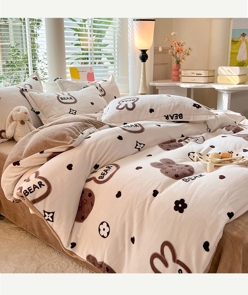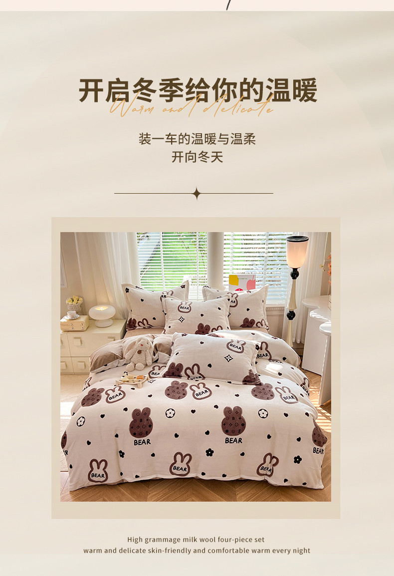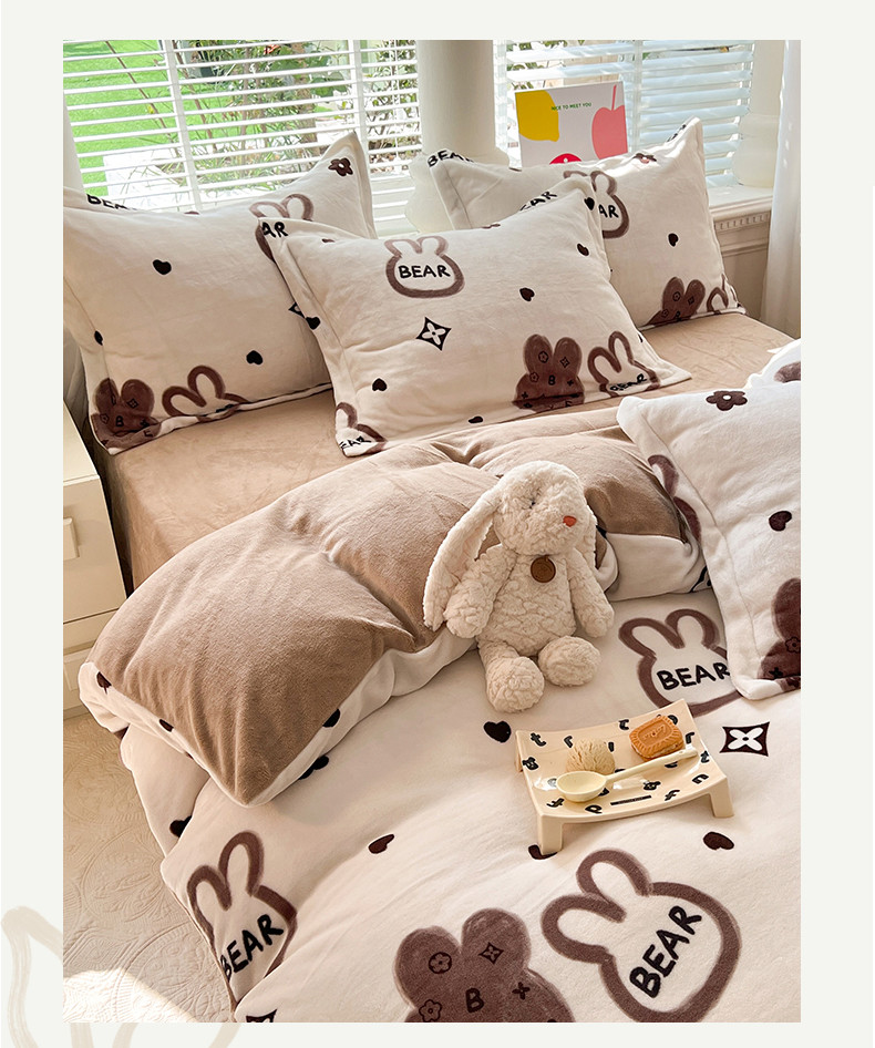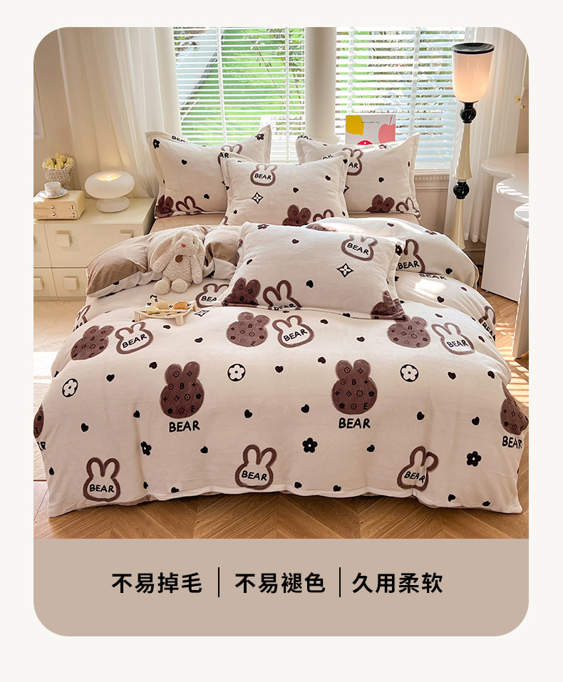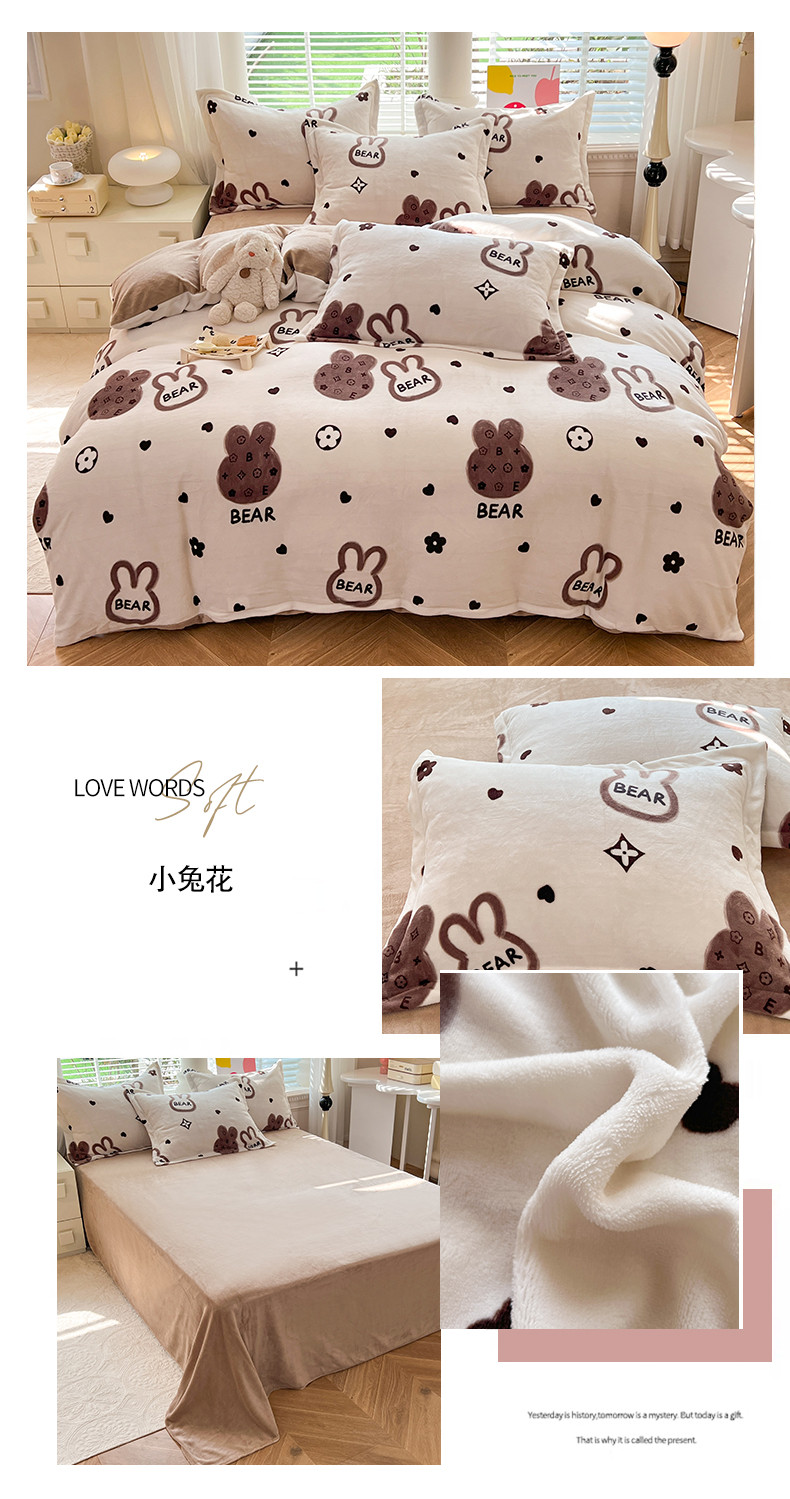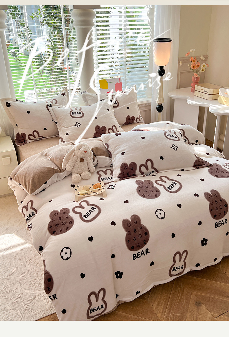 当前位置: 91家纺网 > 商品网购 > 床品套件 > 四件套 > 牛奶绒四件套 > 妖妖家纺 2023新款牛奶绒四件套 小兔花
