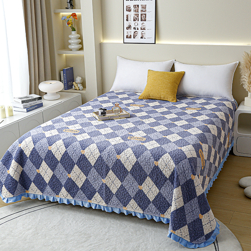 家维 2025年新款牛奶绒床盖花边款床盖 方格