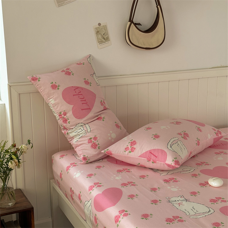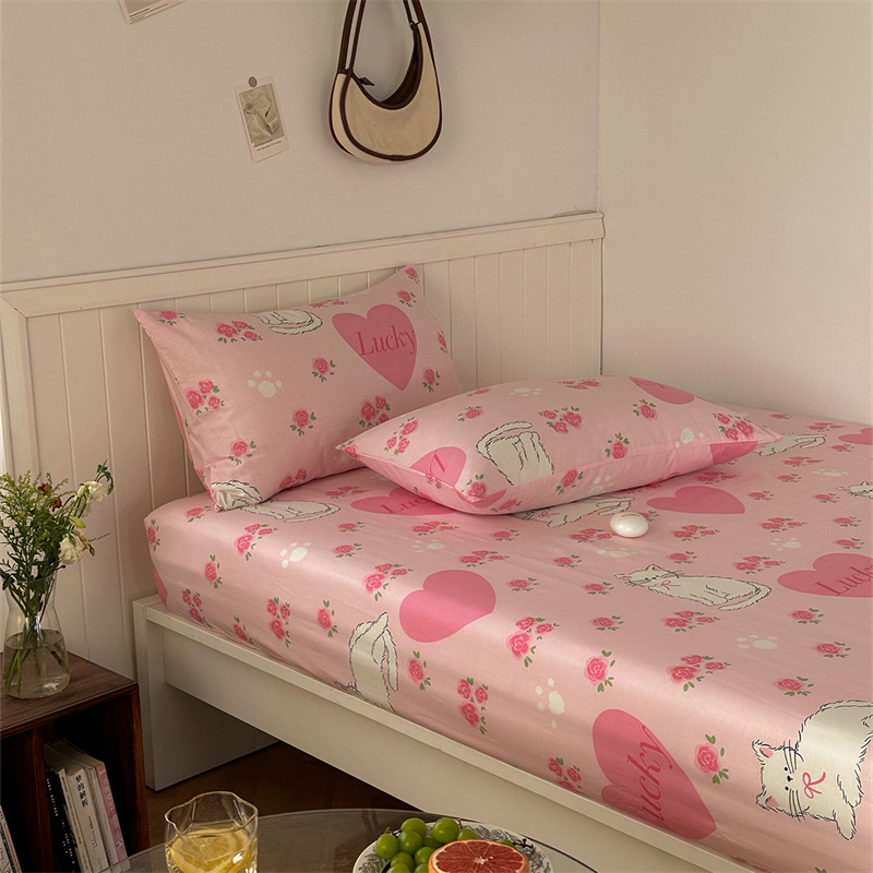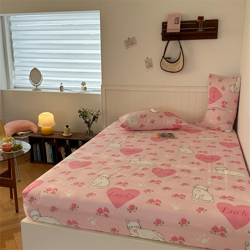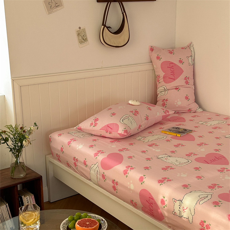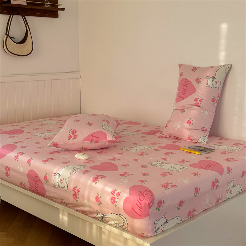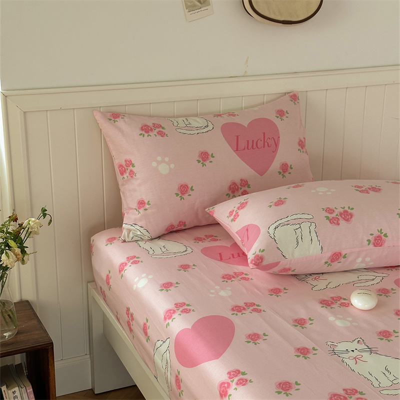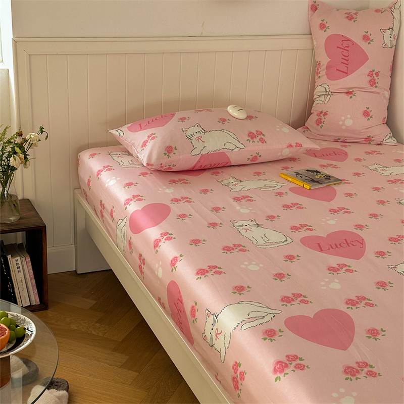 商品名称:洋铭区 2023新款全棉单品床笠桃心猫