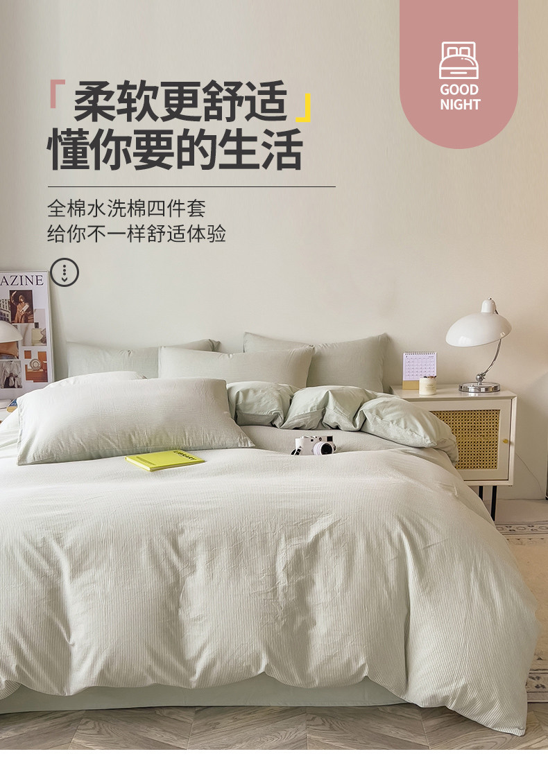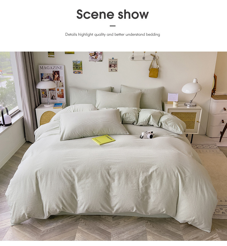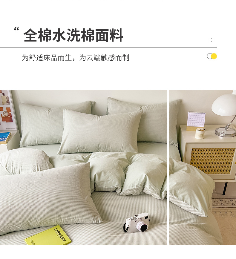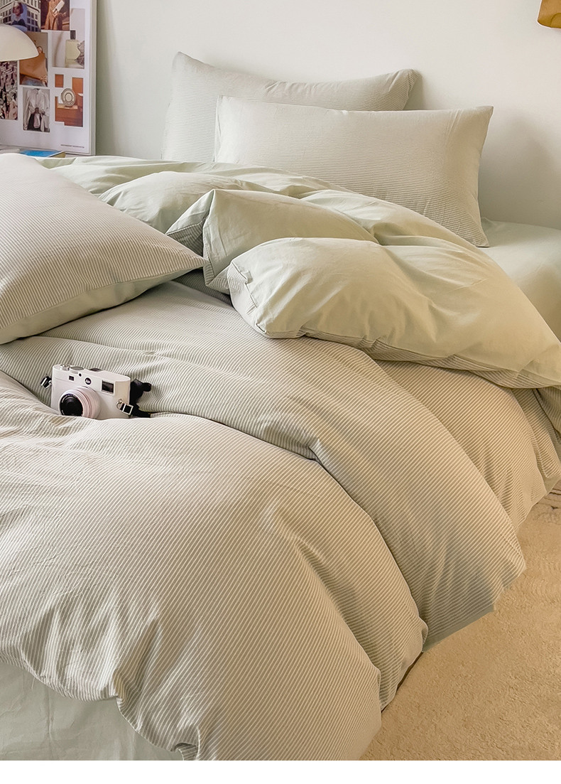当前位置: 91家纺网 > 商品网购 > 床品套件 > 四件套 > 水洗棉四件套 > 芃成 2023新款全棉水洗棉四件套 绿条纹