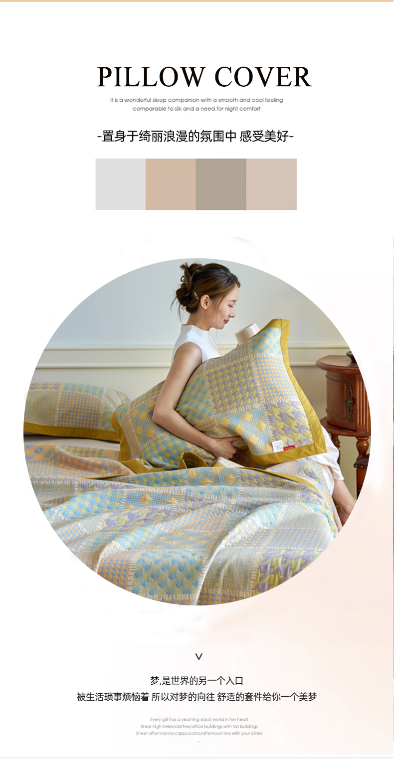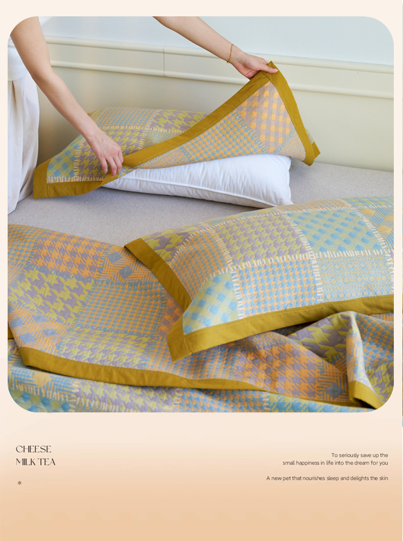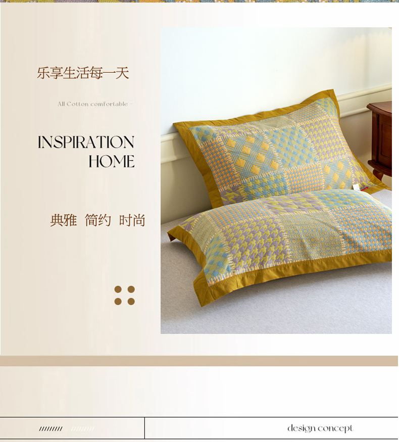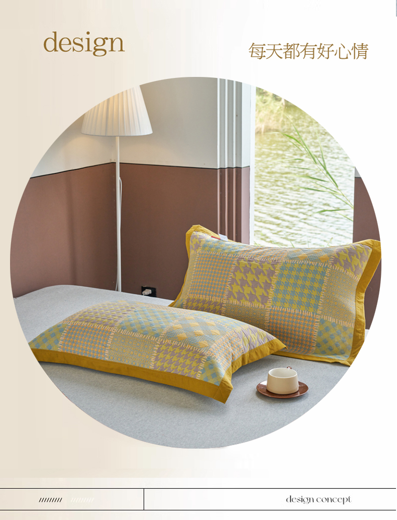 棠薇家纺-毛巾被 2023新款60支细纱全棉枕巾三层纱夹棉枕巾 艾克黄枕巾