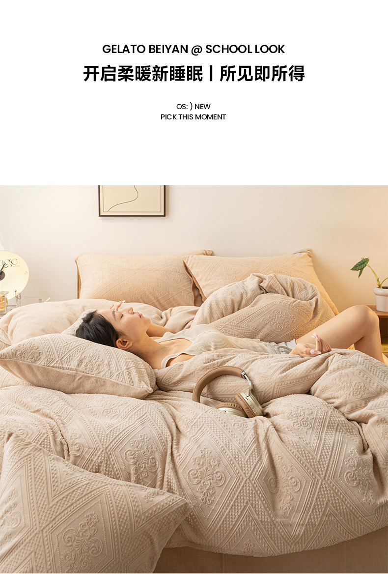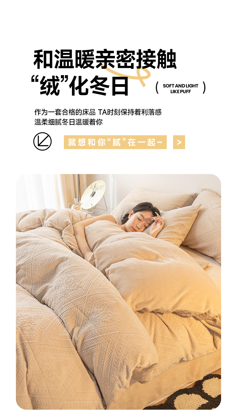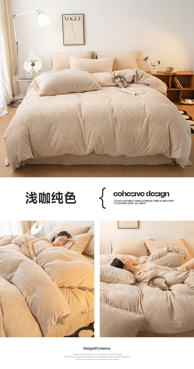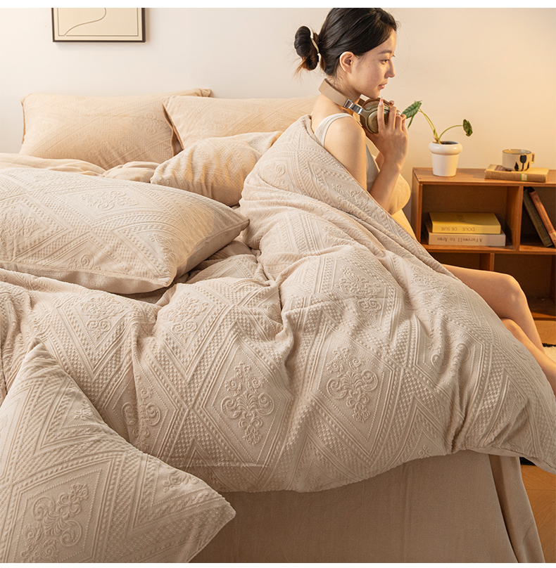当前位置: 91家纺网 > 商品网购 > 床品套件 > 四件套 > 牛奶绒四件套 > 寐眠 2023新款牛奶绒剪花四件套(菱格) 浅咖纯色