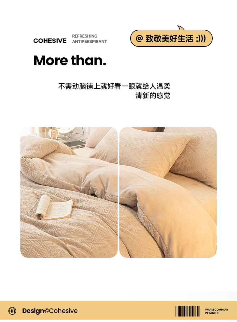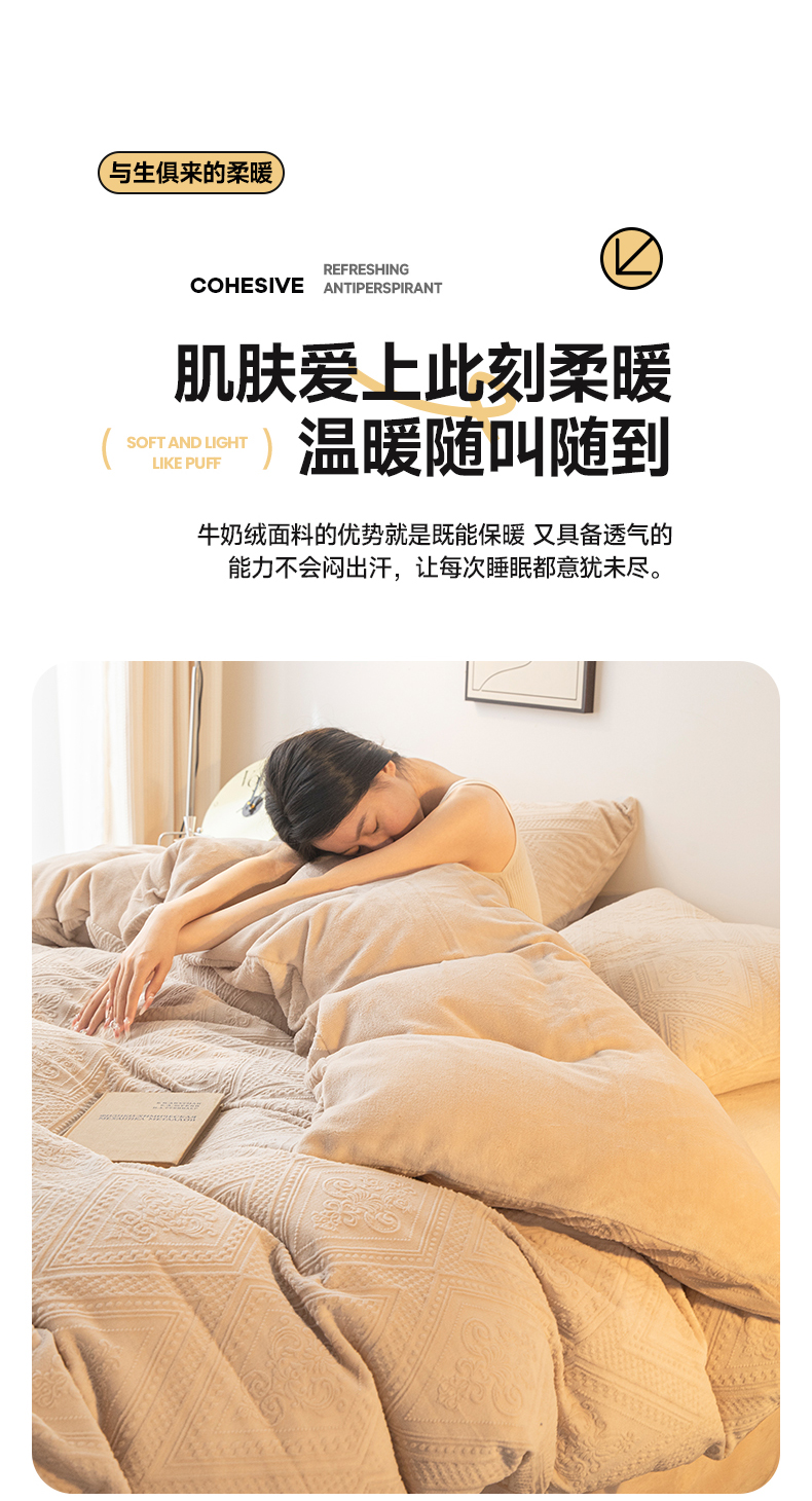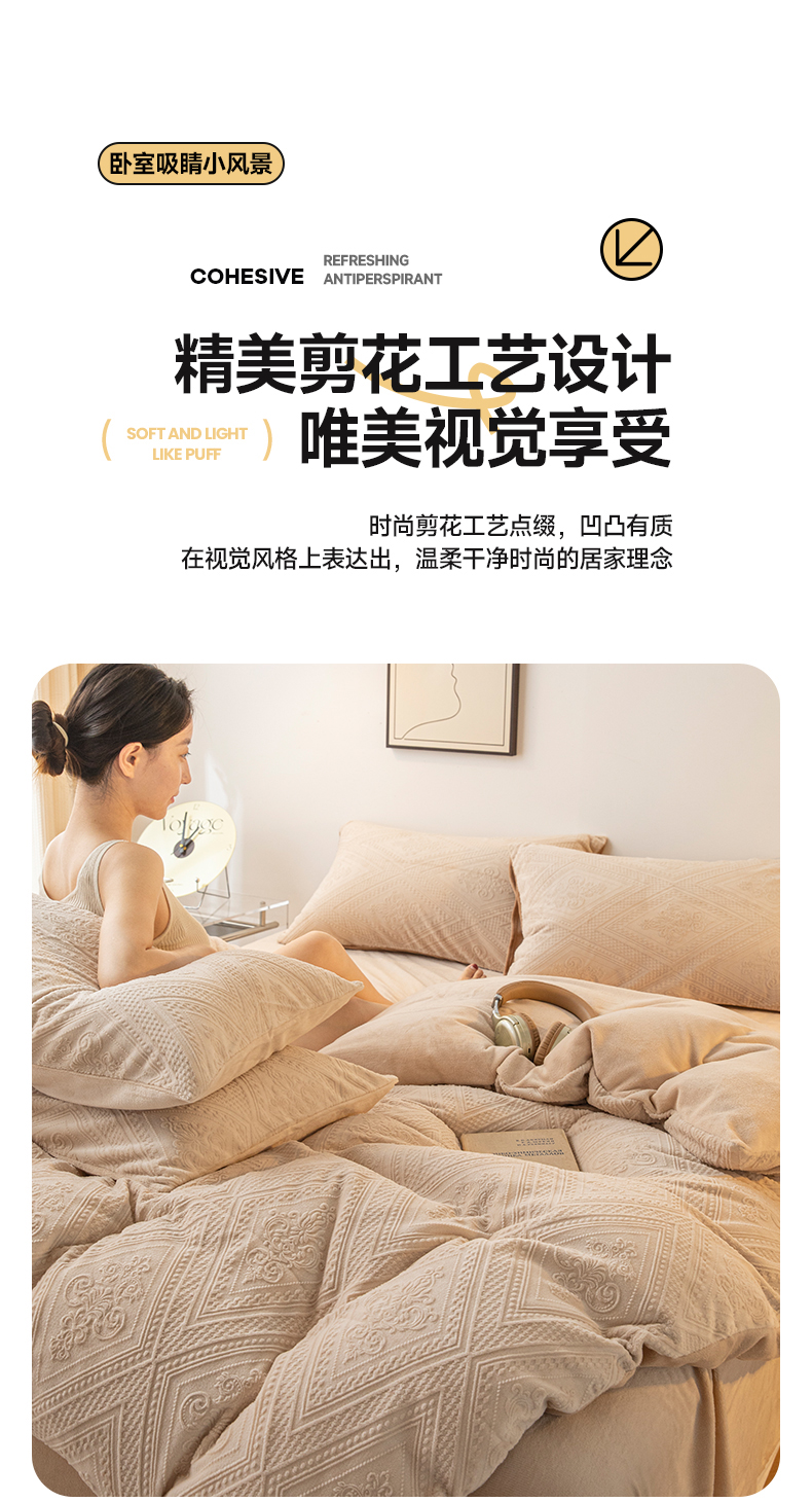当前位置: 91家纺网 > 商品网购 > 床品套件 > 四件套 > 牛奶绒四件套 > 寐眠 2023新款牛奶绒剪花四件套(菱格) 浅咖纯色
