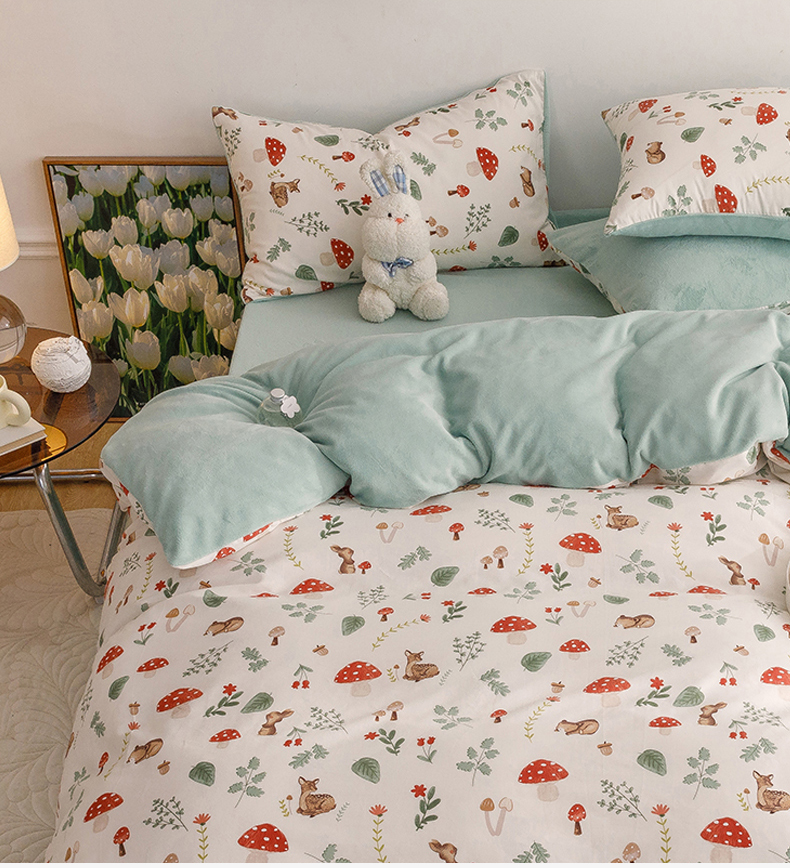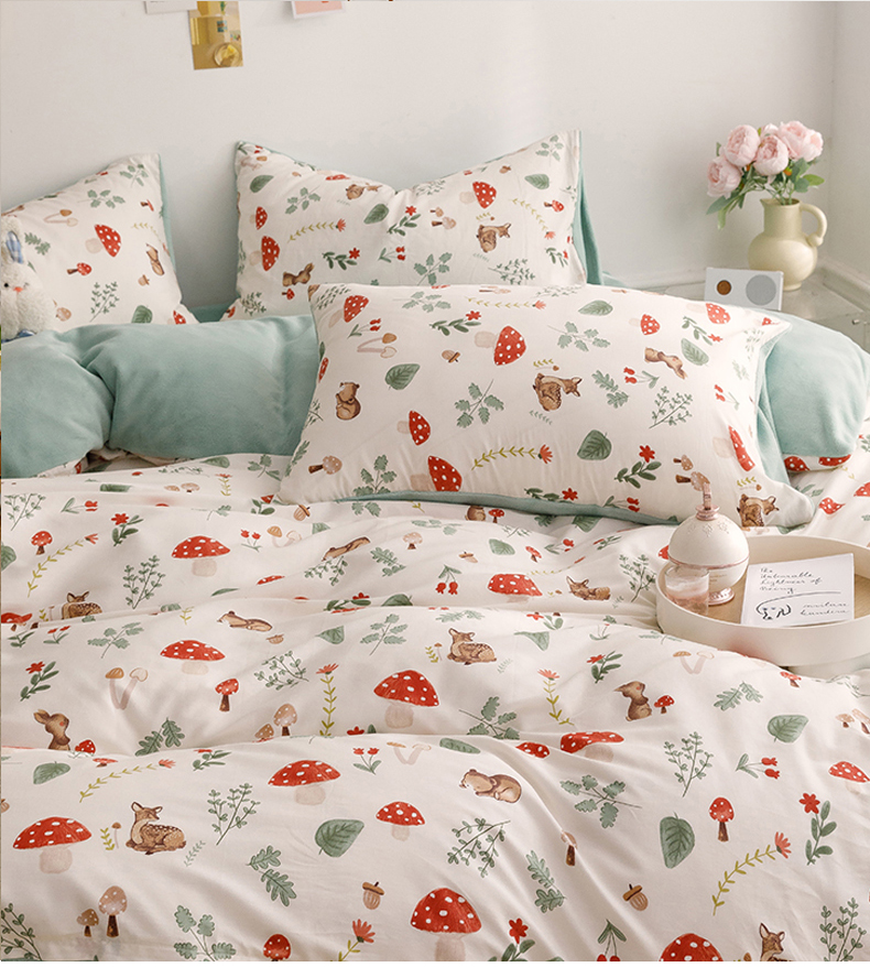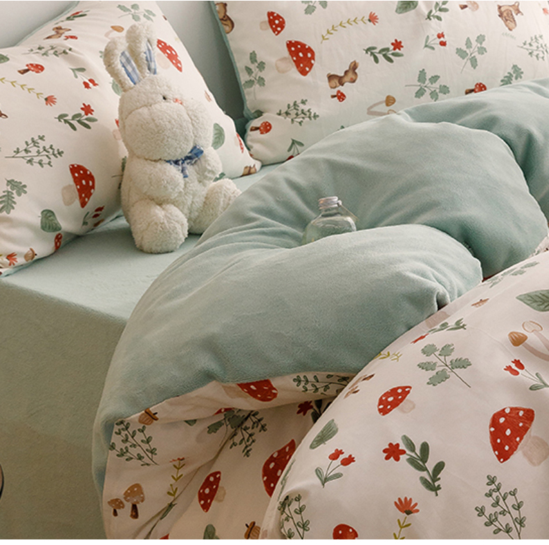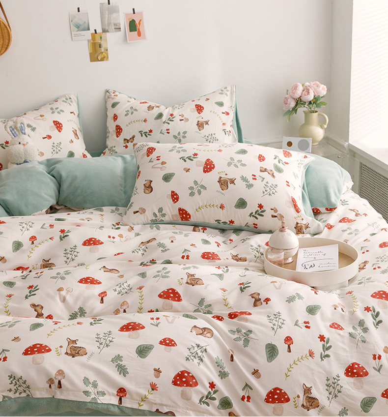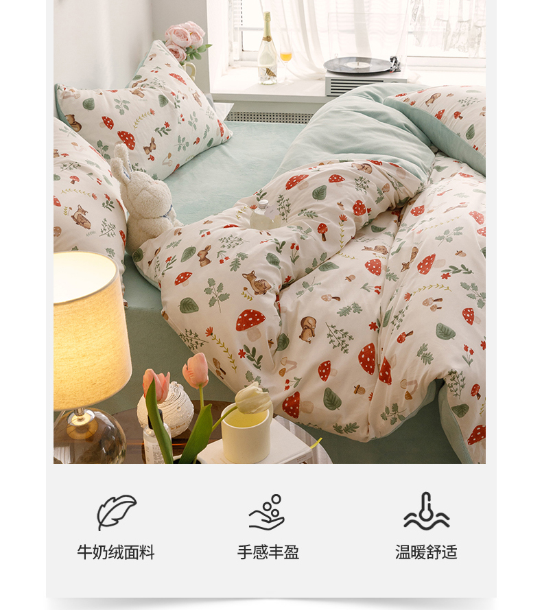 当前位置: 91家纺网 > 商品网购 > 床品套件 > 四件套 > 牛奶绒四件套 > 麦伦家居 2023秋冬新品多功能床品全棉加牛奶绒四件套 蘑菇林
