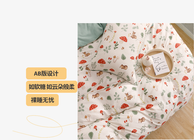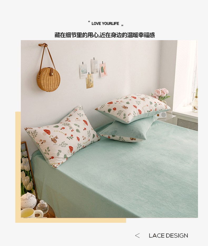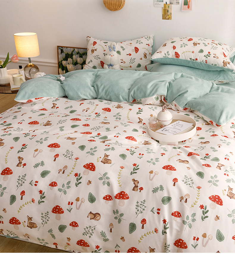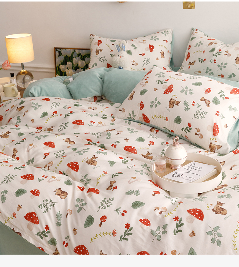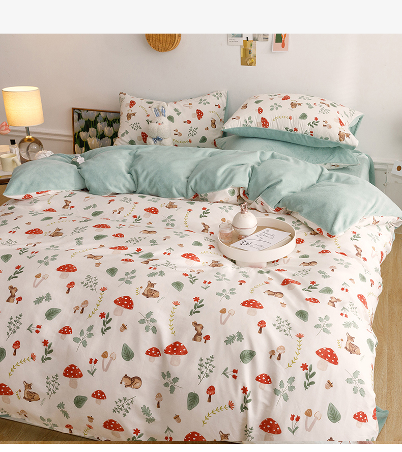 当前位置: 91家纺网 > 商品网购 > 床品套件 > 四件套 > 牛奶绒四件套 > 麦伦家居 2023秋冬新品多功能床品全棉加牛奶绒四件套 蘑菇林