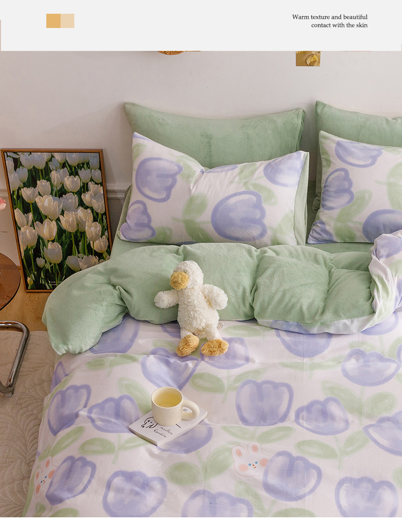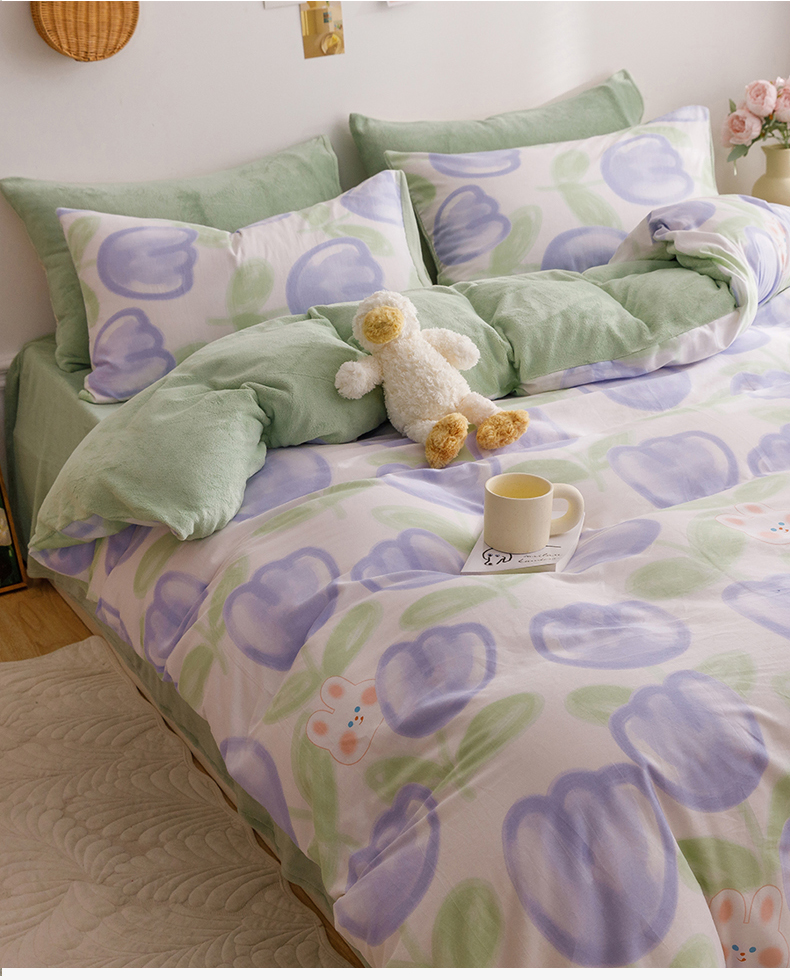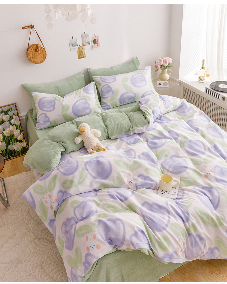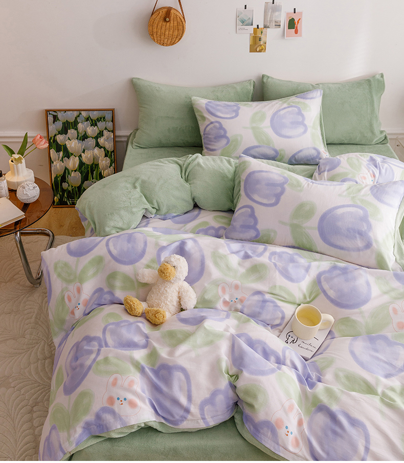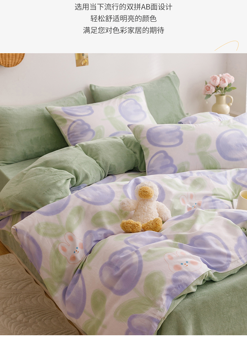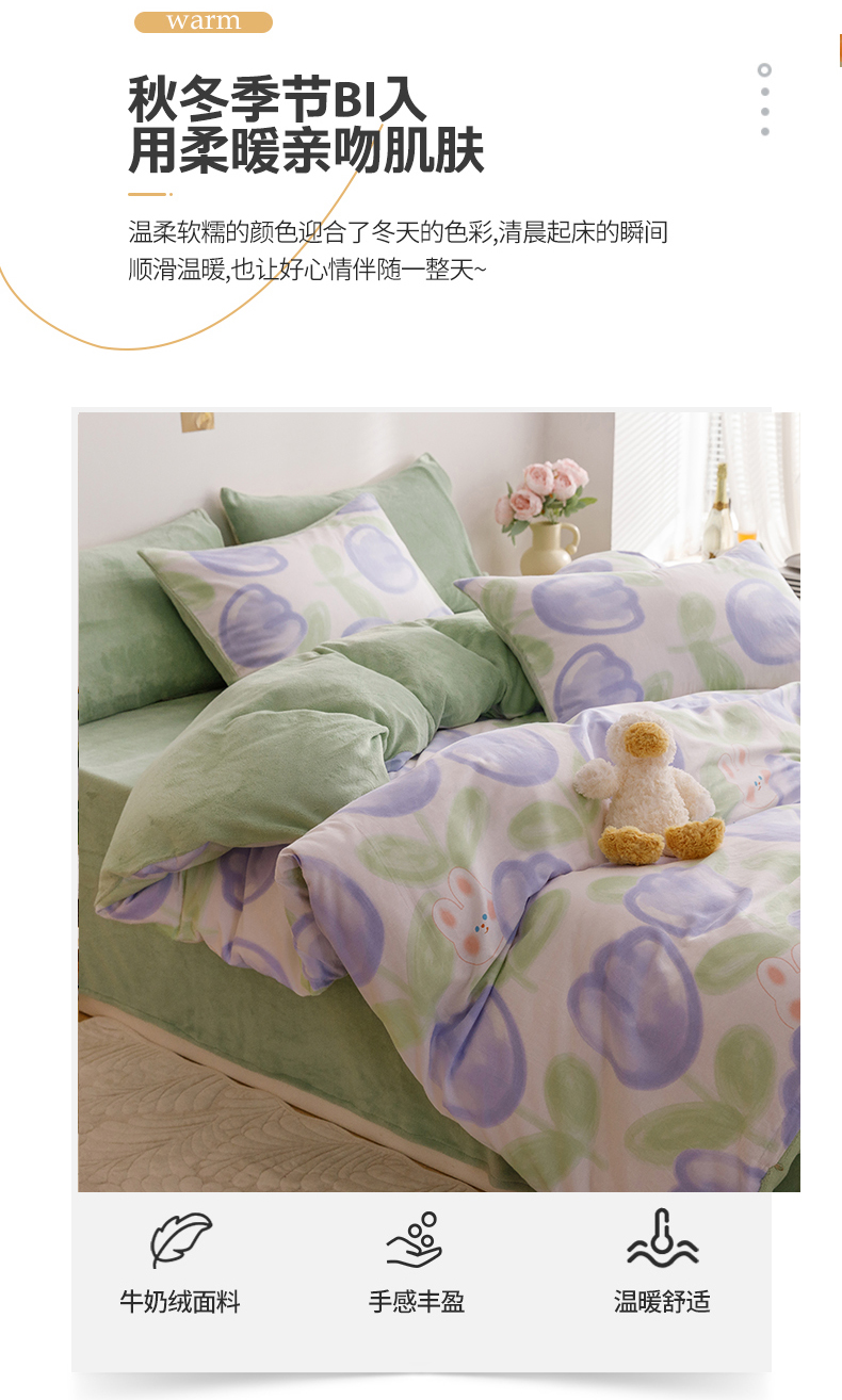 当前位置: 91家纺网 > 商品网购 > 床品套件 > 四件套 > 牛奶绒四件套 > 麦伦家居 2023秋冬新品多功能床品全棉加牛奶绒四件套 郁金小兔
