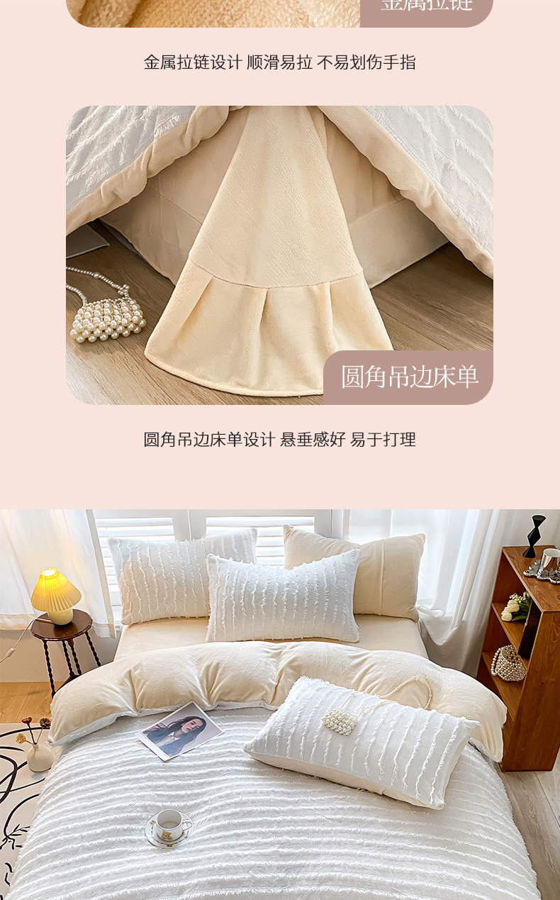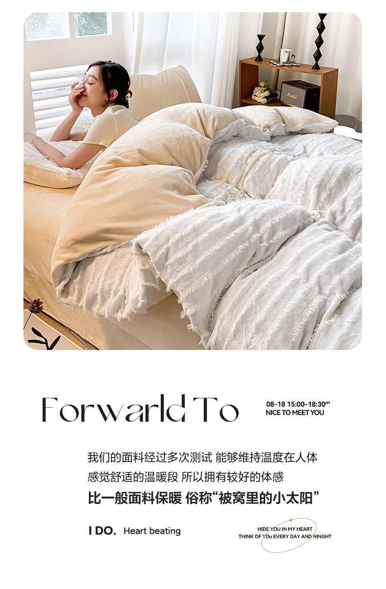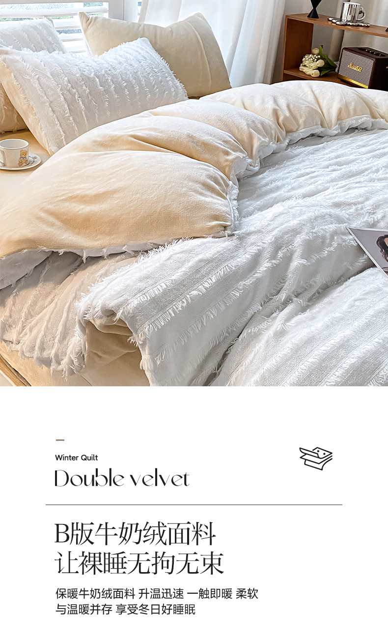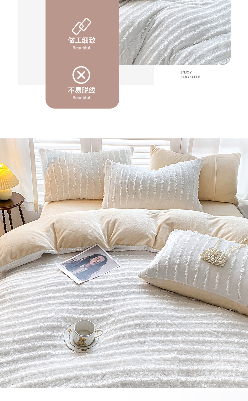当前位置: 91家纺网 > 商品网购 > 床品套件 > 四件套 > 牛奶绒四件套 > 吾诺家居 2023新款保暖流苏绒牛奶绒四件套 流苏米白