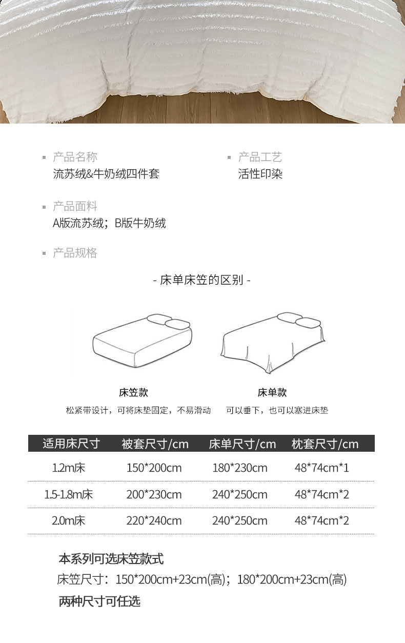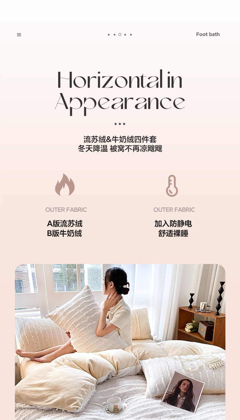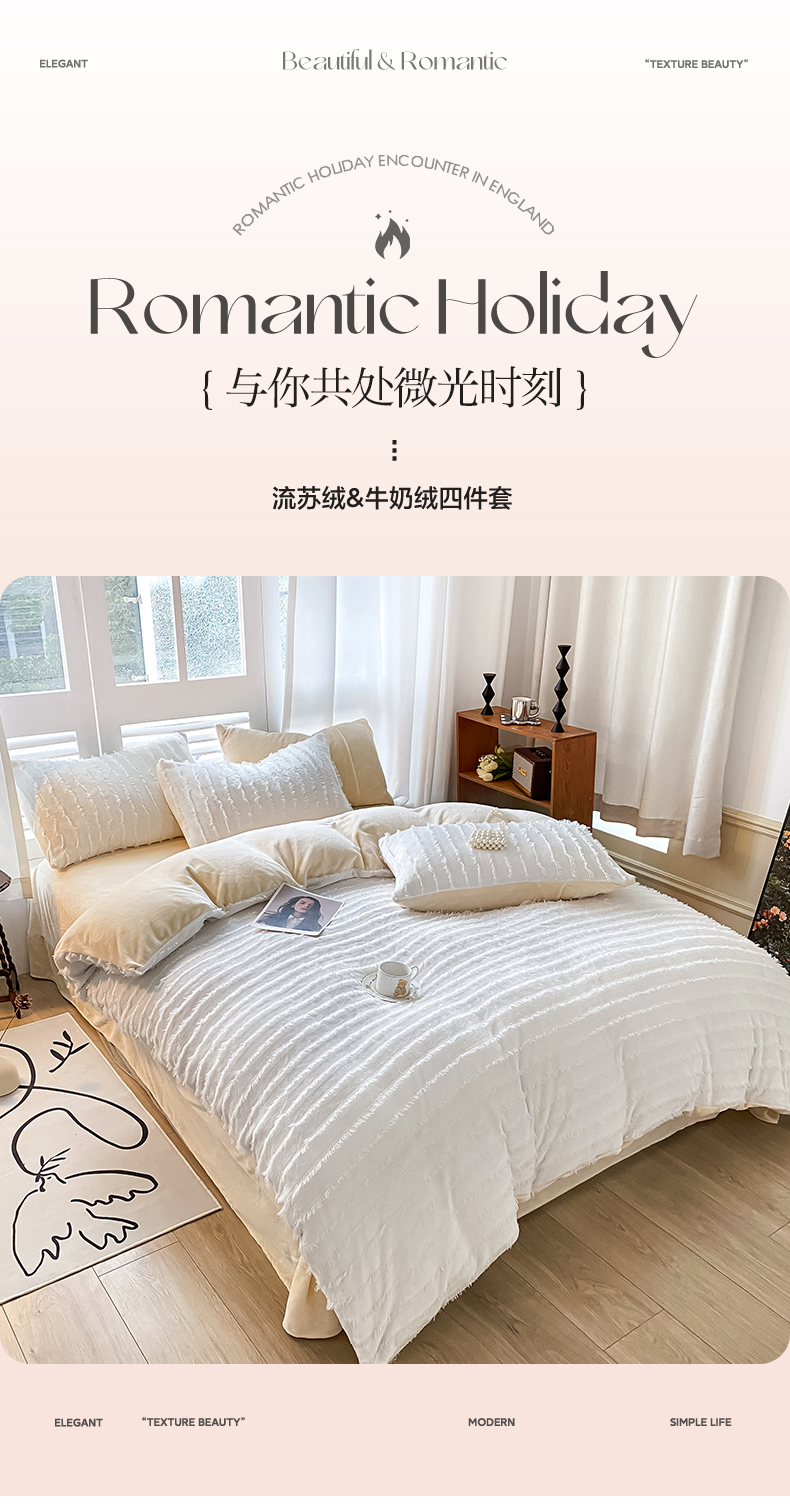 当前位置: 91家纺网 > 商品网购 > 床品套件 > 四件套 > 牛奶绒四件套 > 吾诺家居 2023新款保暖流苏绒牛奶绒四件套 流苏米白