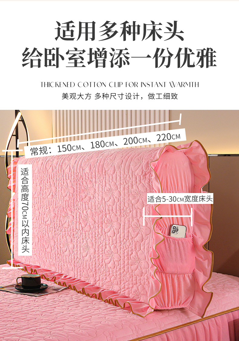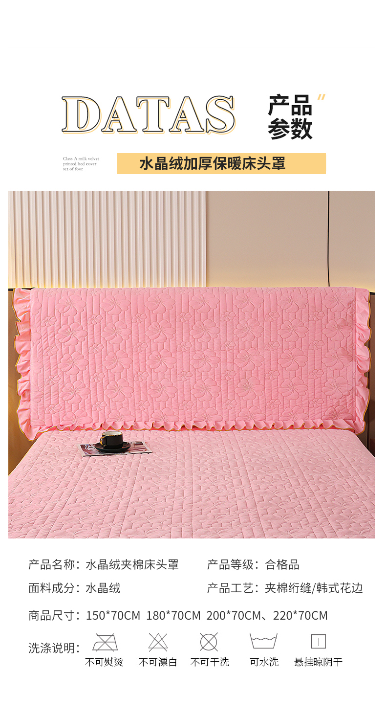商品名称:新款水晶绒加厚保暖床头罩-盛世花颜 盛世花颜-粉玉