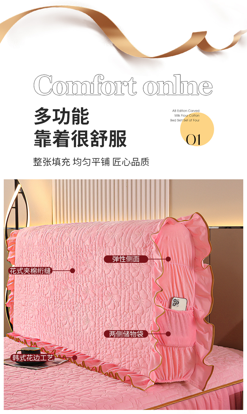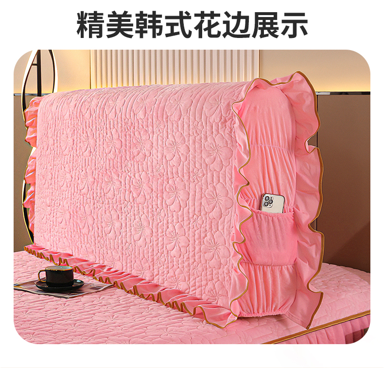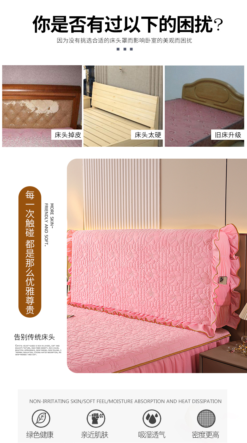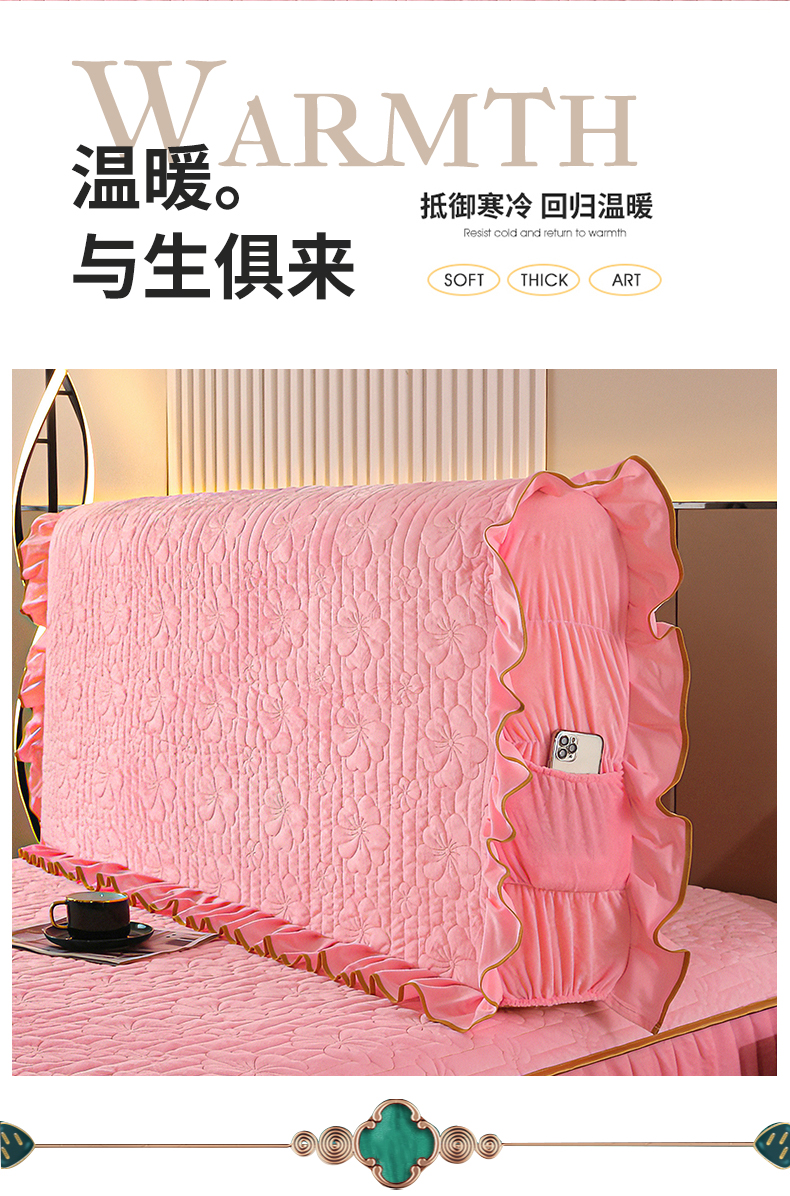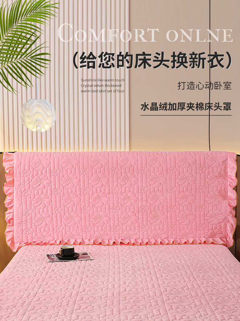 新款水晶绒加厚保暖床头罩-盛世花颜 盛世花颜-粉玉