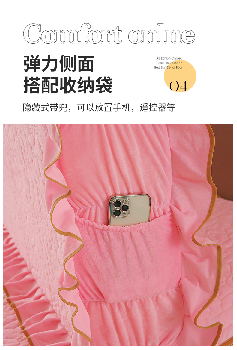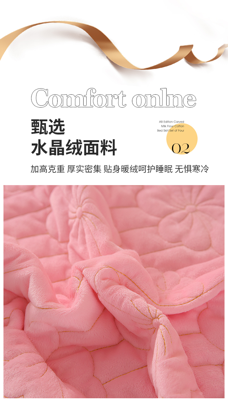 (总)屹成家纺2025新款水晶绒夹棉绗缝床裙四件套(塞纳河畔)四件套起售价不低于230元,大红,豆沙,翡翠绿,粉玉,橄榄绿,蔚蓝,银灰