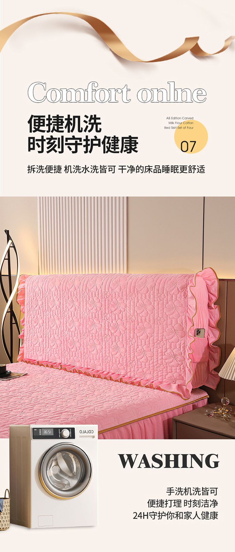 (总)屹成 2024新款水洗棉蕾丝四季款床笠床裙单品套件-床裙三件套,粉玉,豆沙,粉红,大红,橄榄绿,卡其,玫红,浅紫,水绿,天蓝,银灰