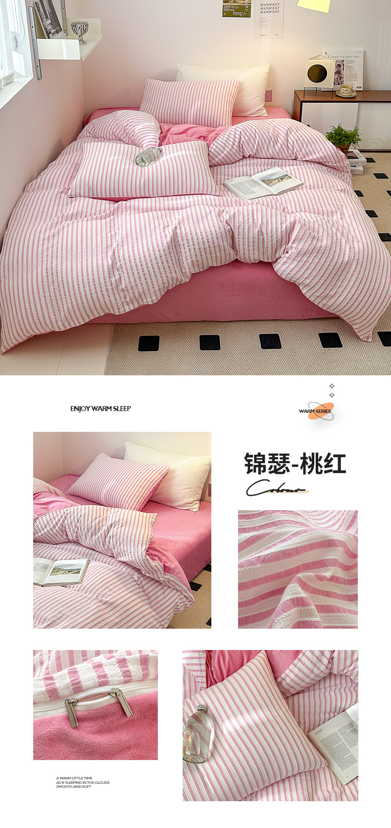 商品名称:怡家居 2023新款色织棉麻提花加绒四件套 锦瑟-桃红