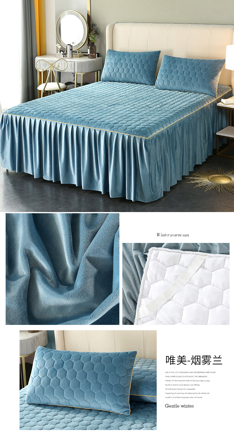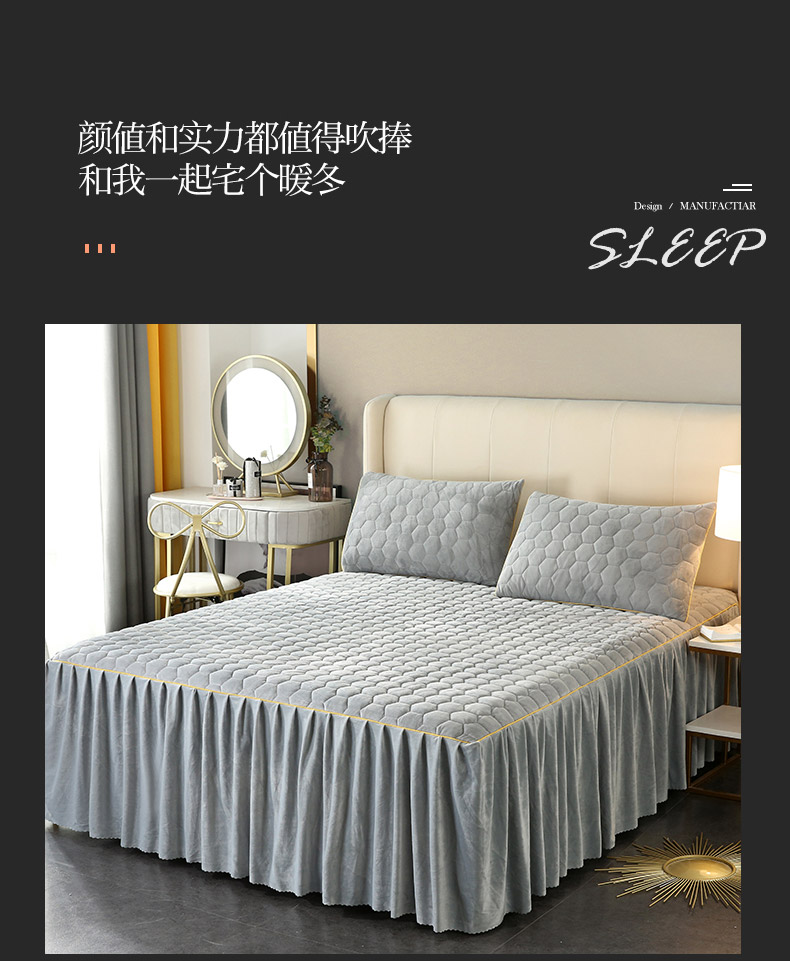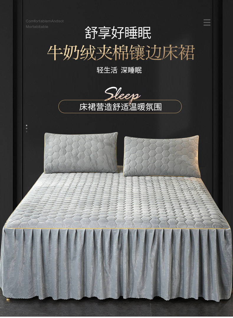 商品名称:(总)胜权 2024新款牛奶绒纯色夹棉单床裙单件保暖三件套席梦思床护垫