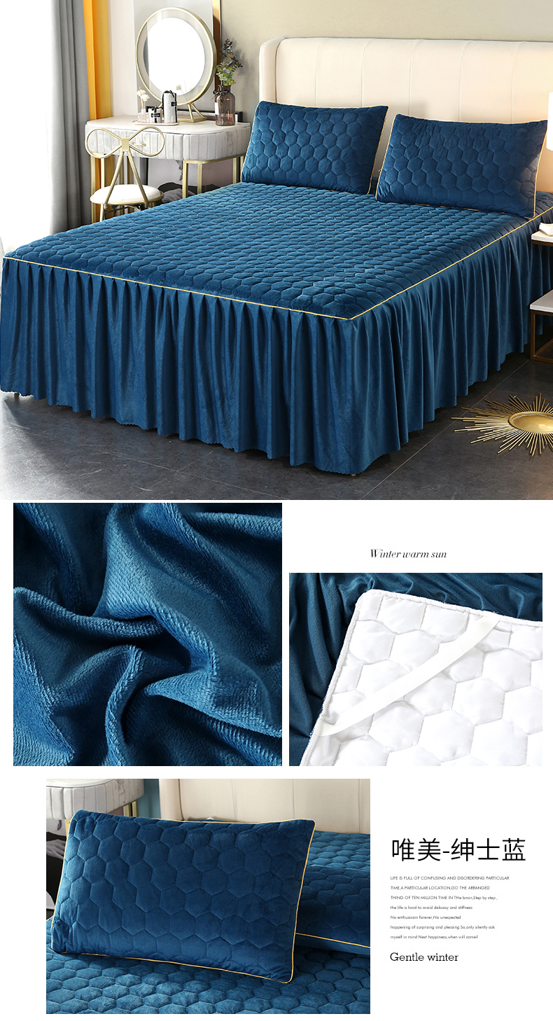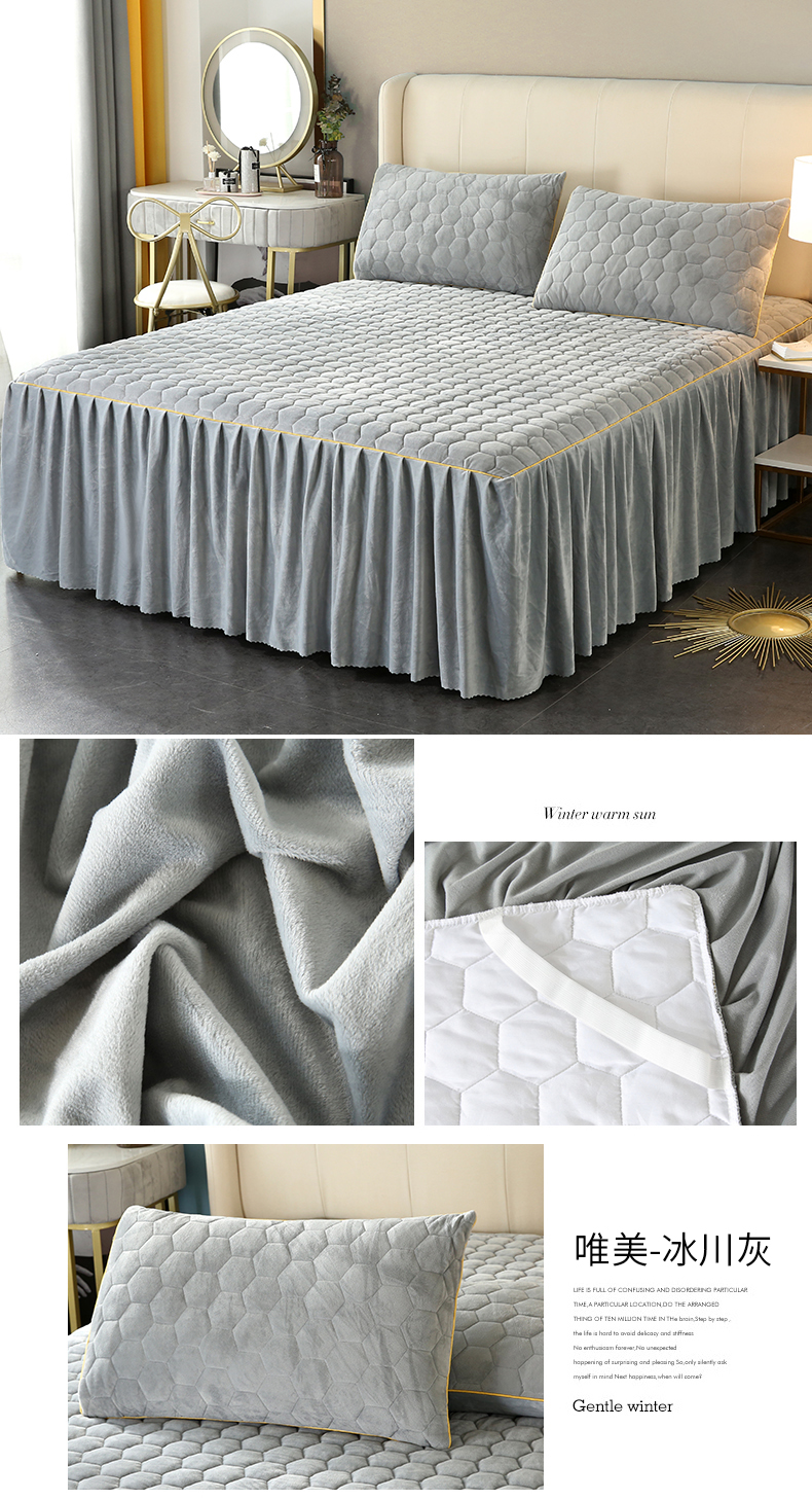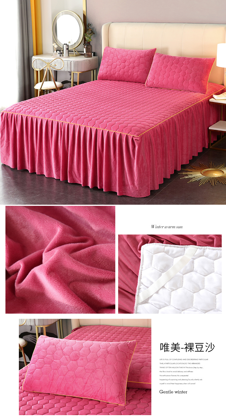 商品名称:(总)胜权 2024新款牛奶绒纯色夹棉单床裙单件保暖三件套席梦思床护垫