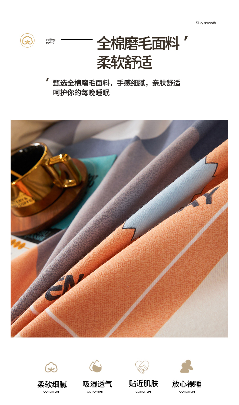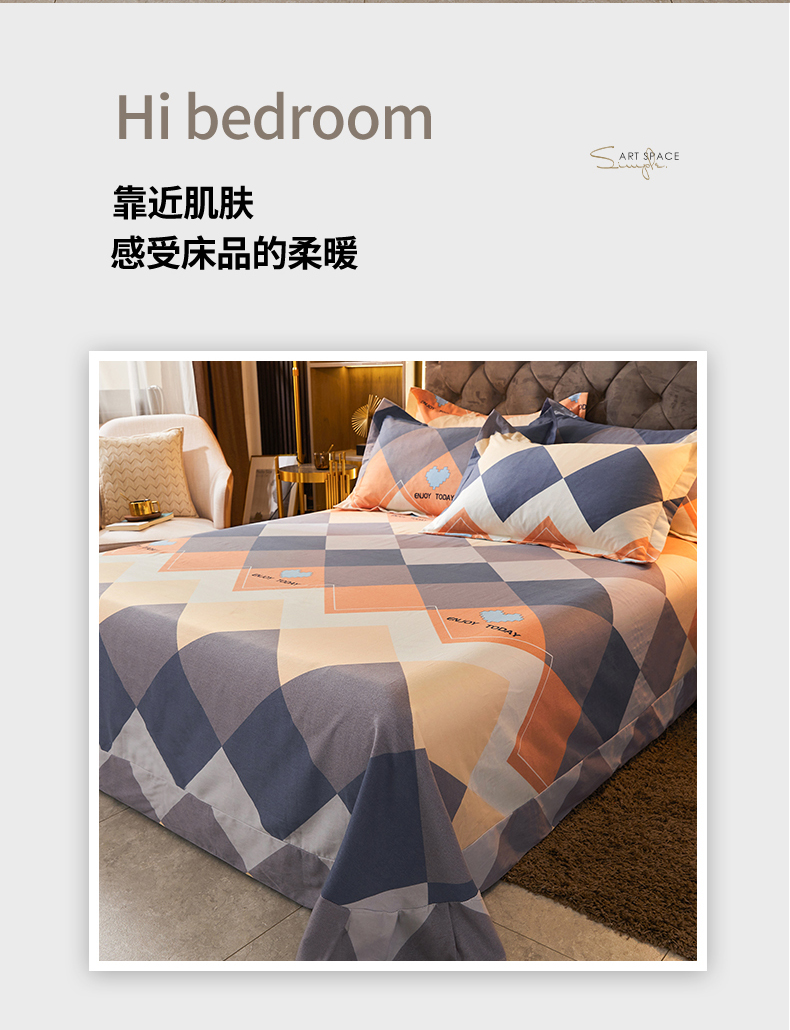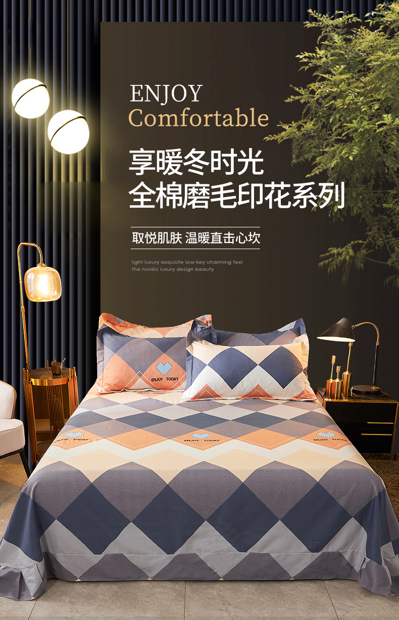 • 91家纺网 家纺一手货源 找家纺 伊而梦 2023新款全棉磨毛印花四件套系列单品床单 .乐享时光-桔