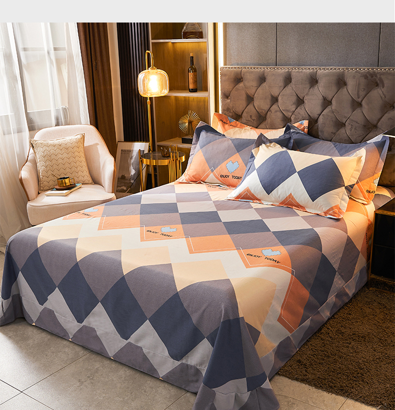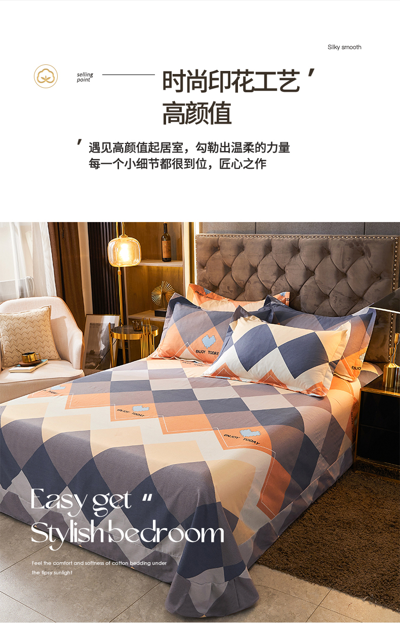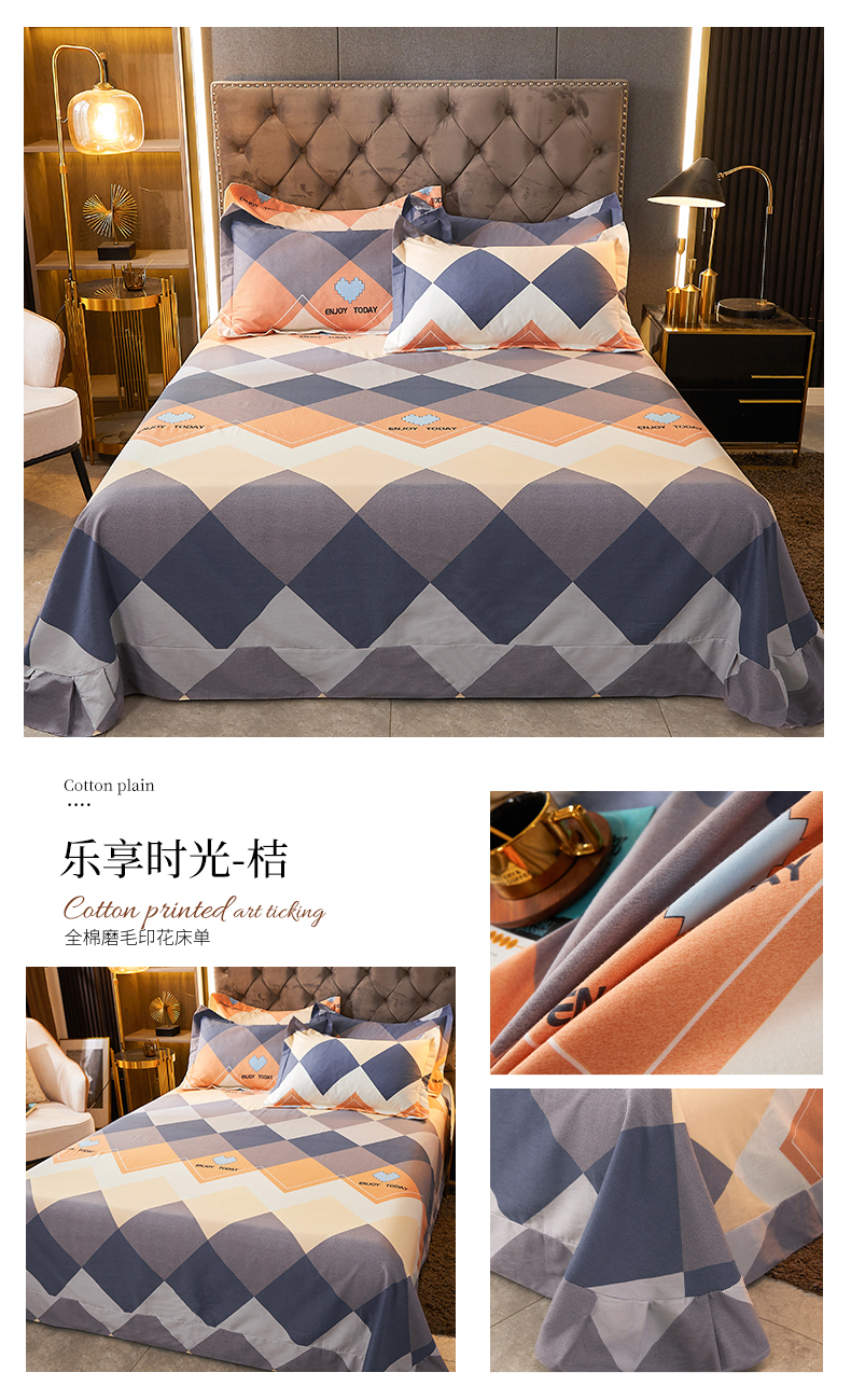 伊而梦 2023新款全棉磨毛印花四件套系列单品床单 .乐享时光-桔