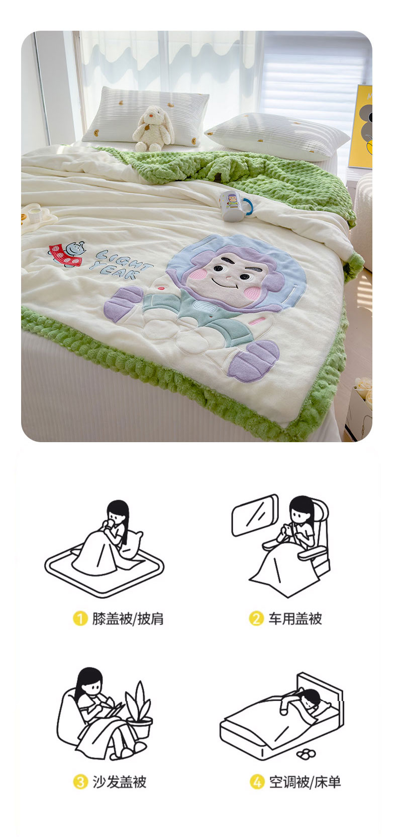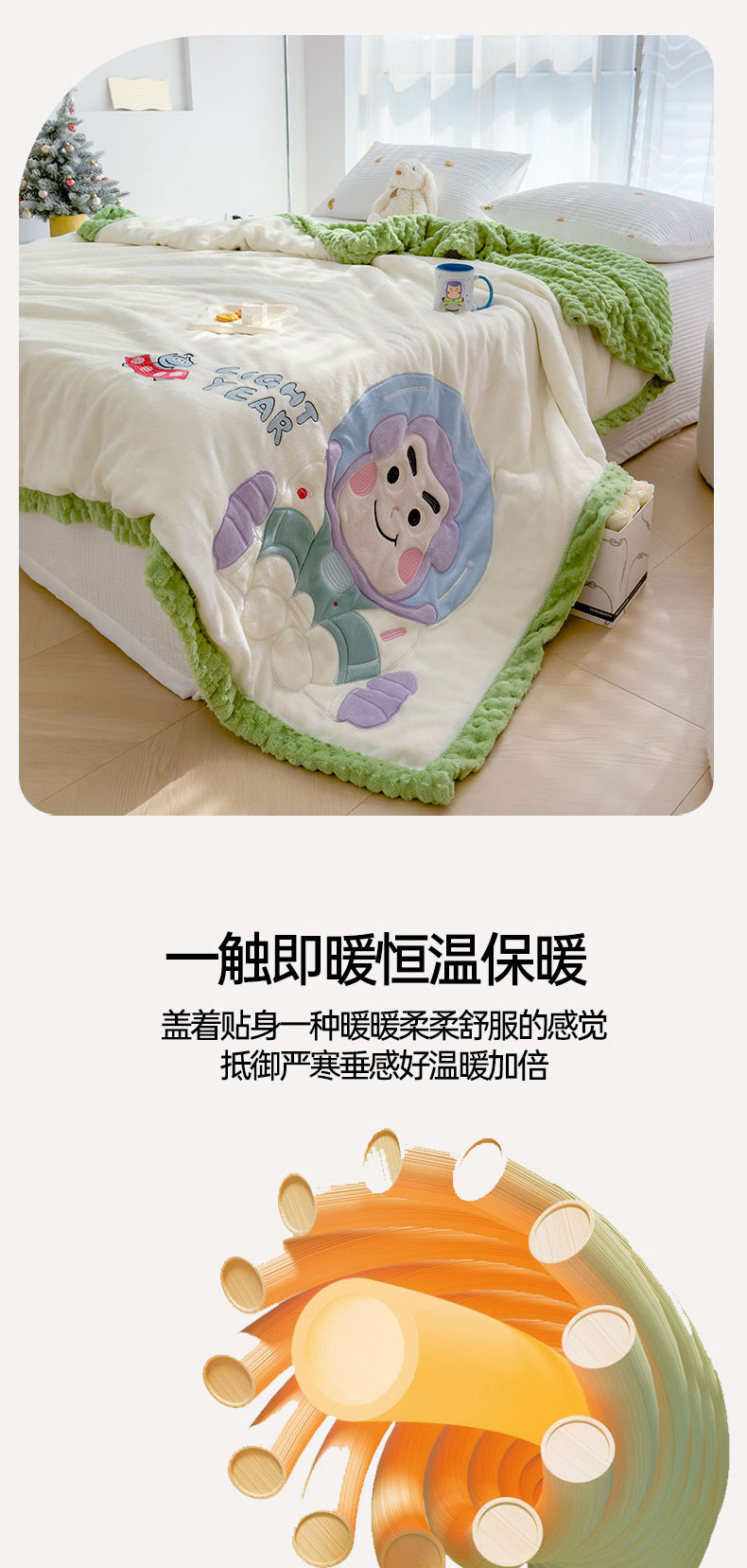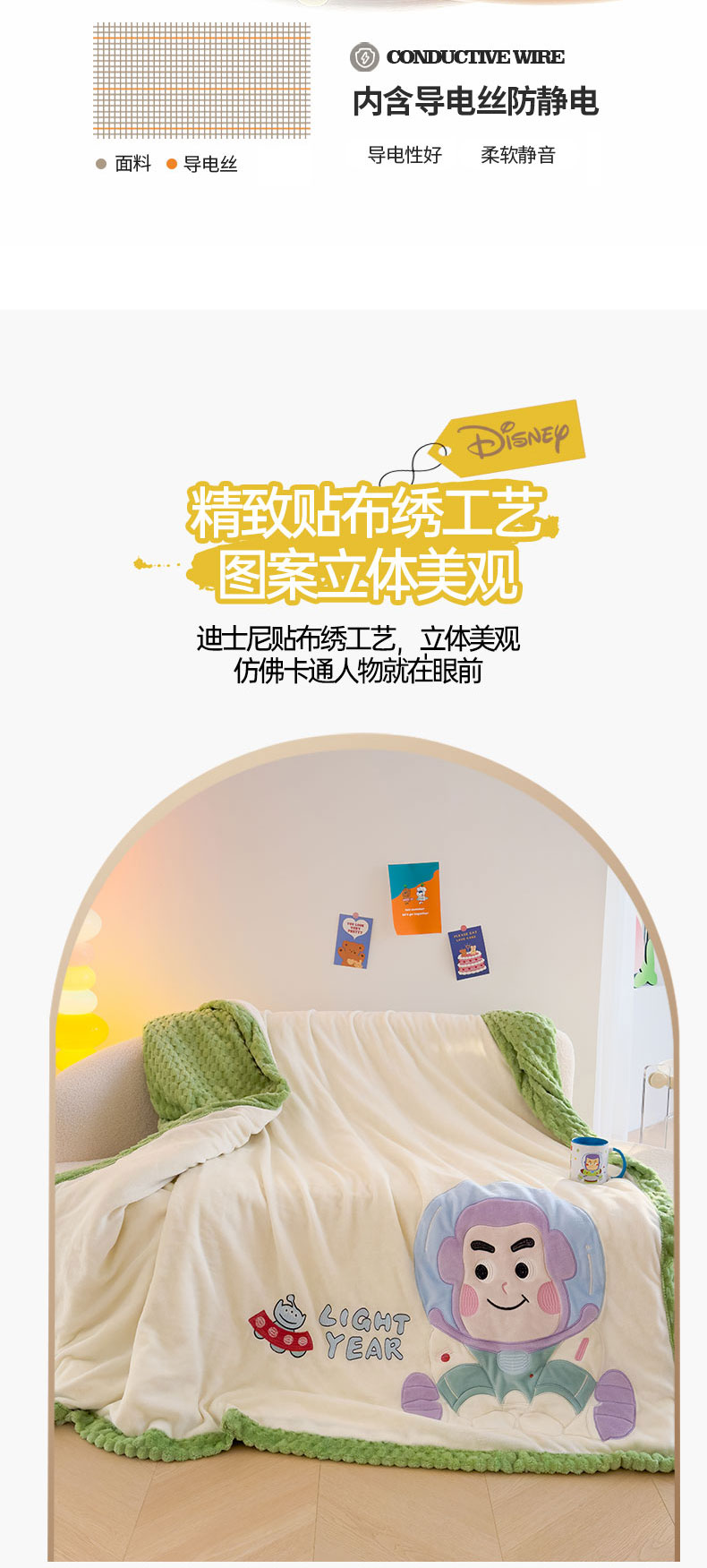 商品名称:灰鲸 2025新款牛奶兔兔绒多功能贴布绣盖毯(带拉链) 巴斯光年