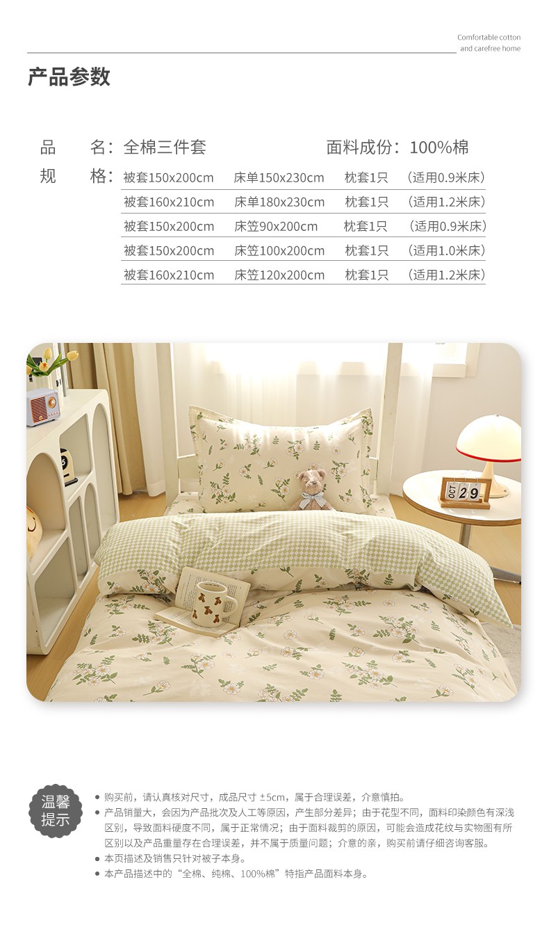 升级款夹棉被套150x200cm床笠90x200cm枕套1只 (仅用0.9米床) | ¥114.00 |