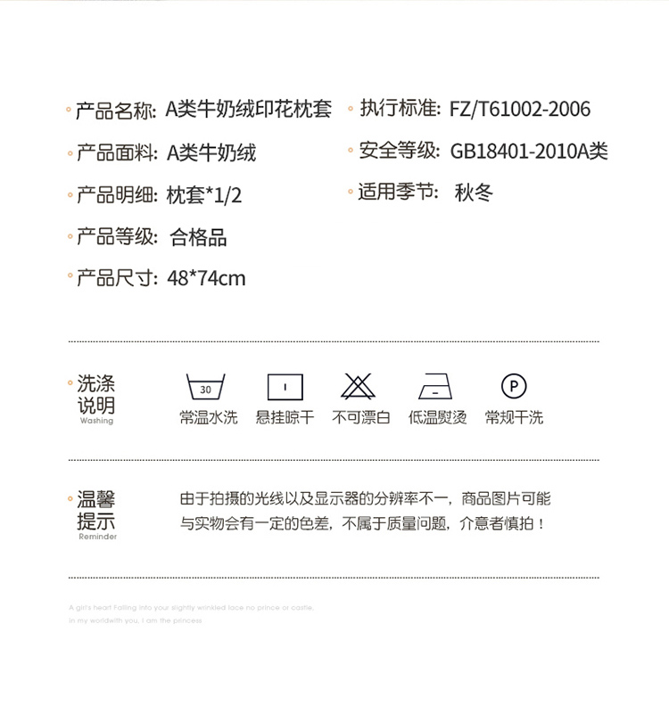 商品名称:(总)雅萱家纺 2023新款A类牛奶绒印花枕套