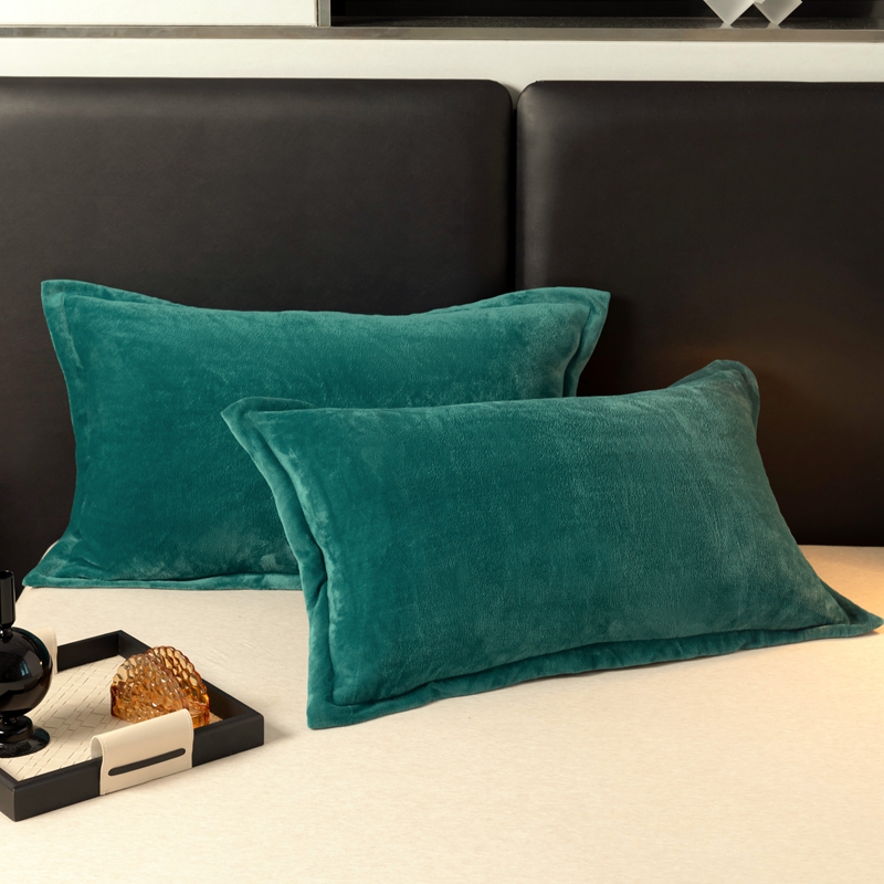 雅萱家纺 2023新款A类牛奶绒印花枕套 深绿