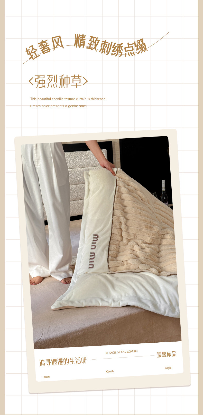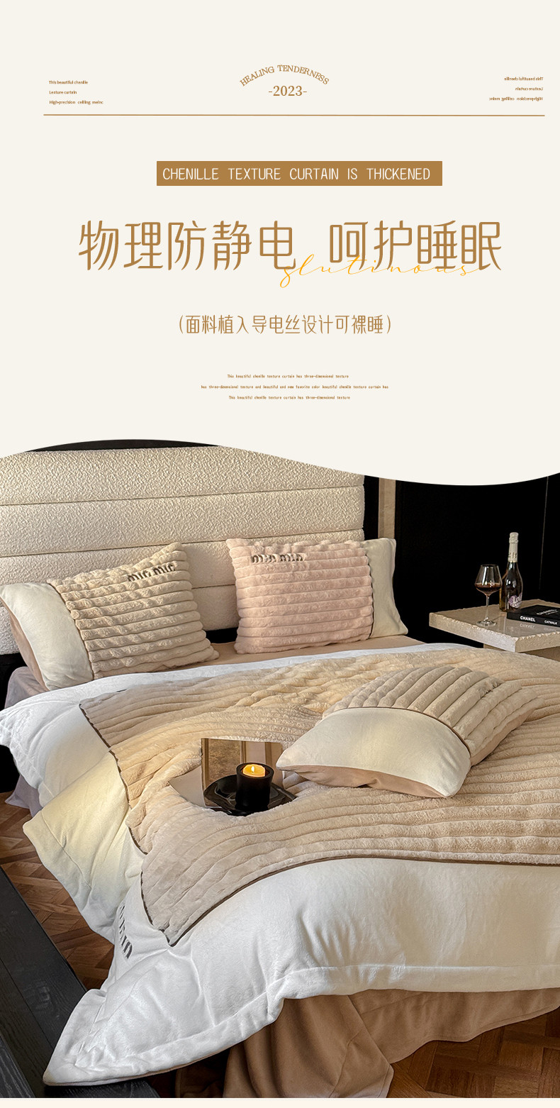 商品名称:名品优仓 2024新款条纹兔绒拼绒边四件套-安露丝 安露丝-奶咖