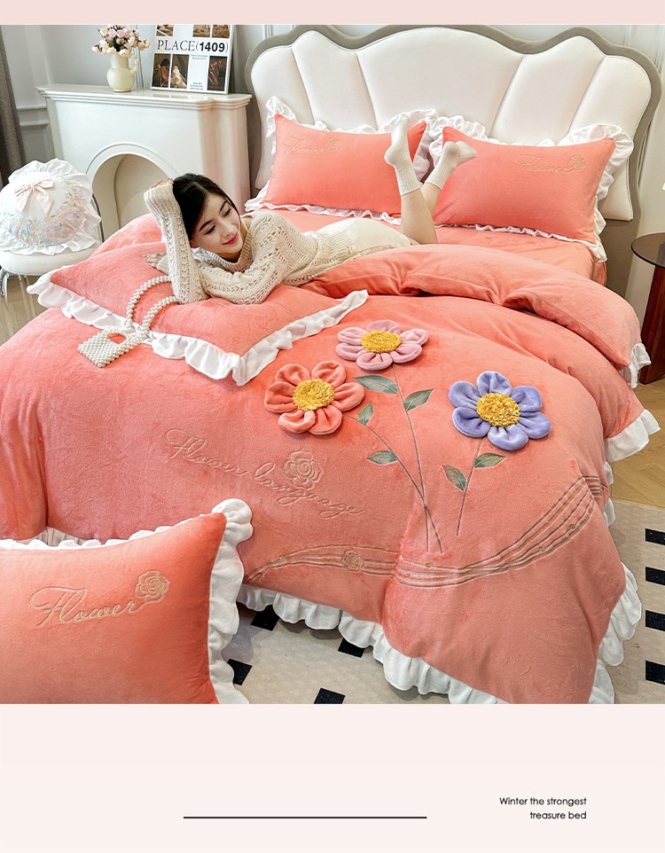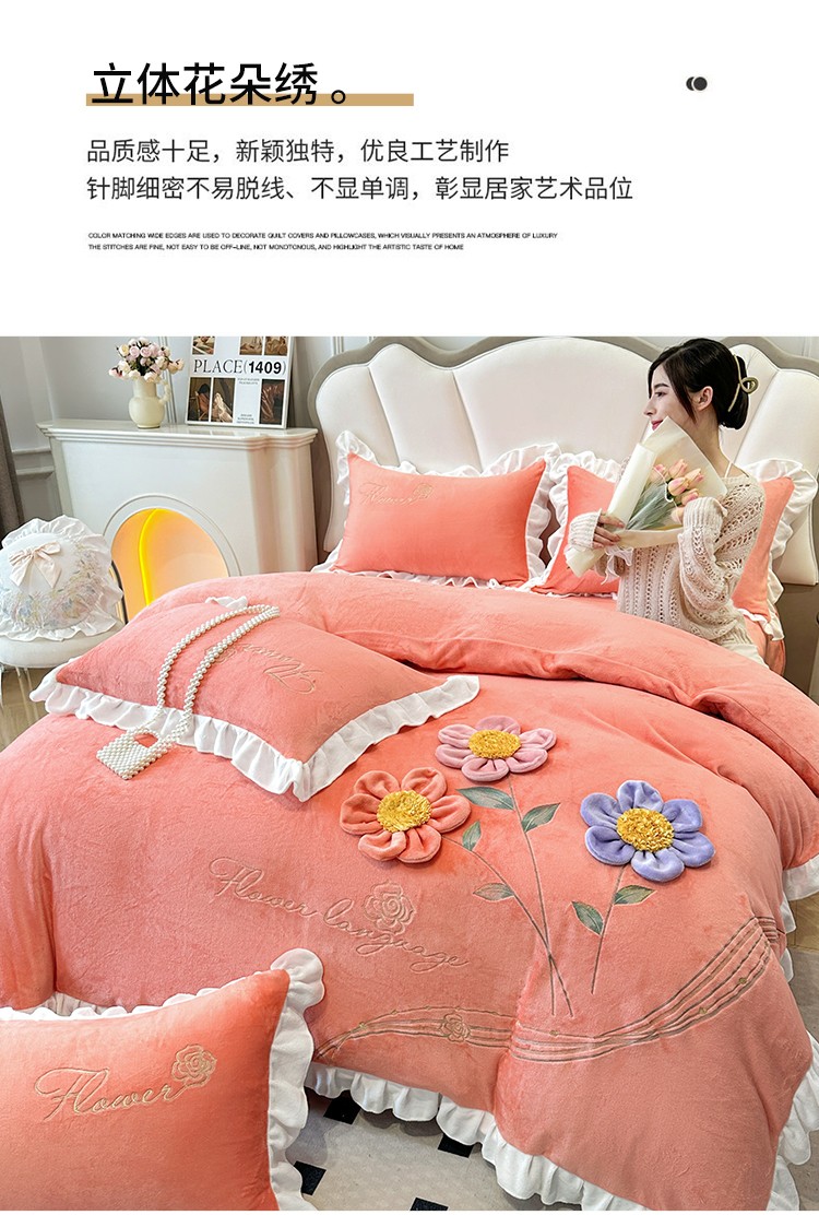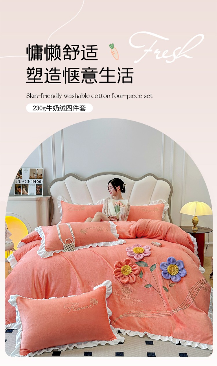 漫布云9斤230g全消光婴儿绒被套兔毛绒牛奶绒贴布绣刺绣花四件套小清新