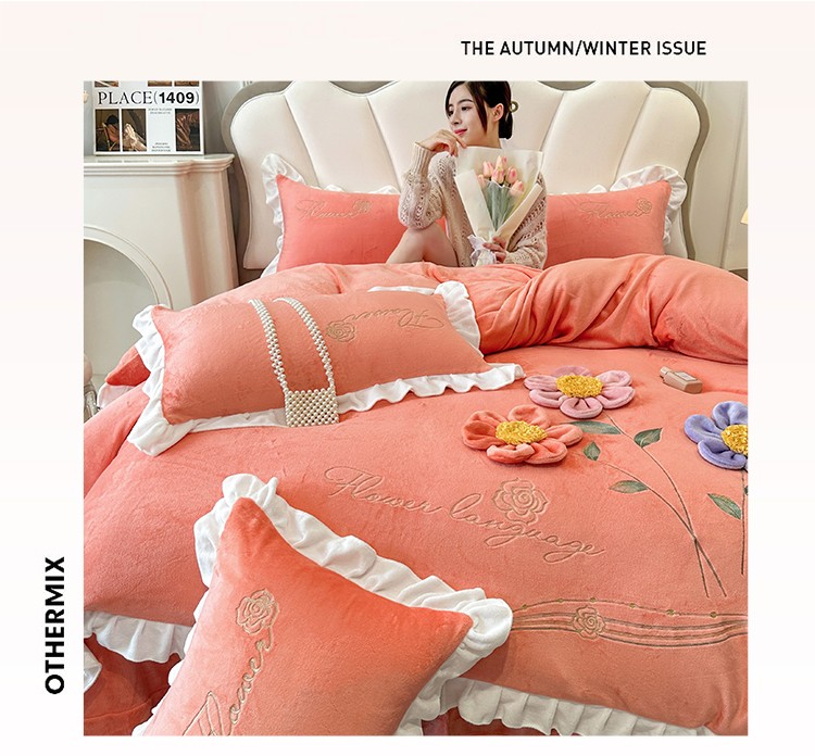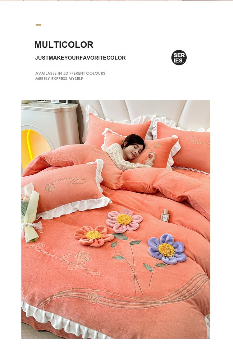 (总)漫布云2025秋冬新款全消光大版花卉平绣牛奶绒刺绣款四件套--绽放系列,绽放-艾玛橙, 绽放-豆沙红 ,绽放-樱花粉, 绽放-婴儿蓝 ,绽放-高级灰,绽放-梦幻紫