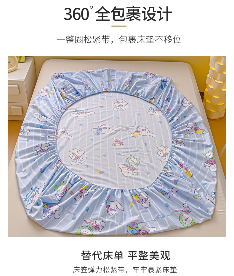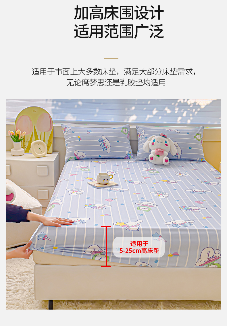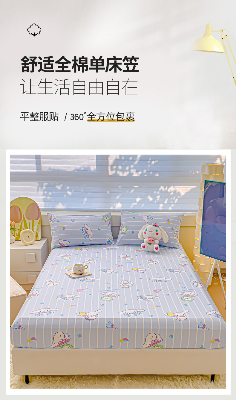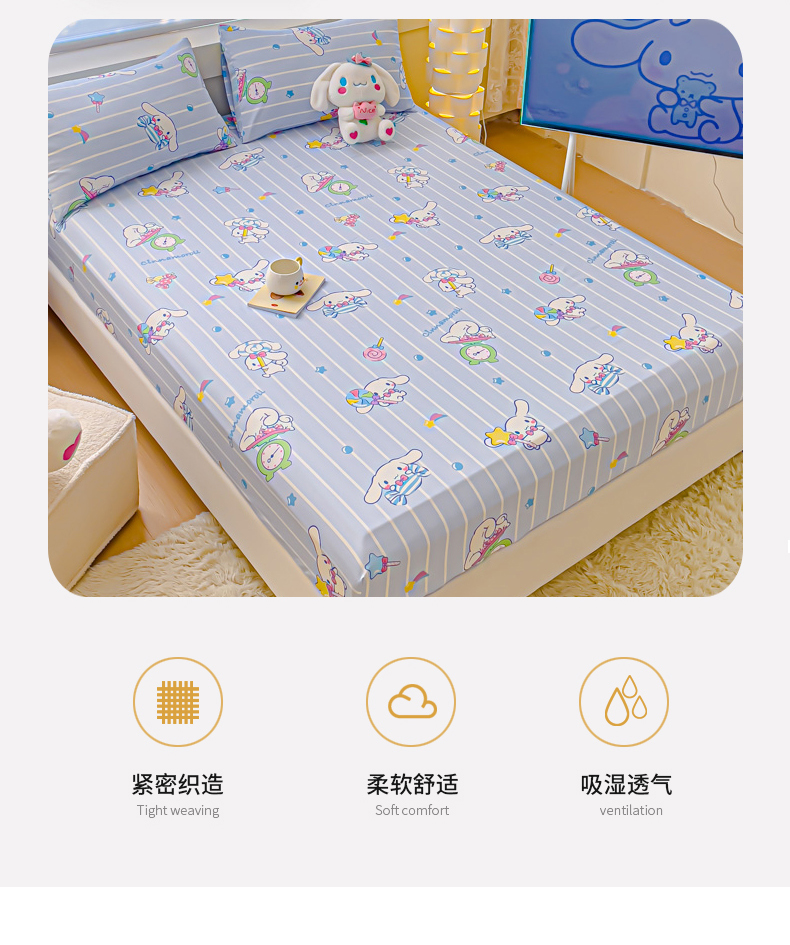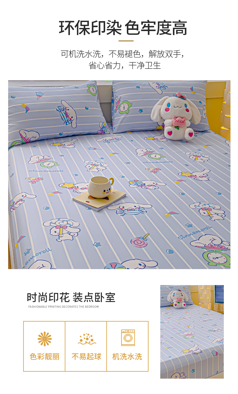 • 91家纺网 家纺一手货源 找家纺 金丝鸟家纺 2024新款全棉三丽鸥系列床笠 条纹玉桂狗