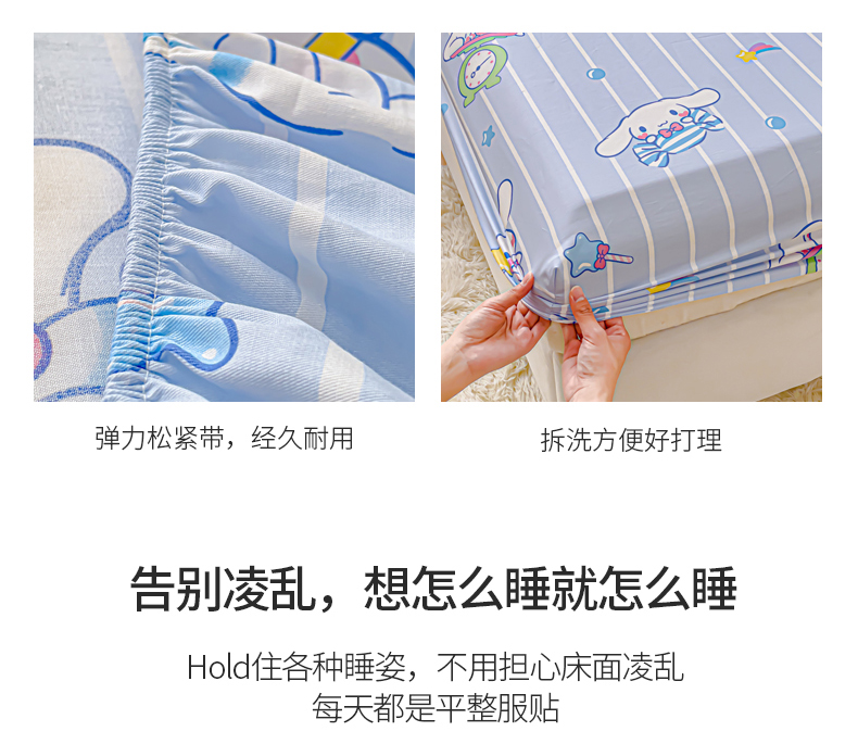 当前位置: 91家纺网 > 商品网购 > 床上用品 > 床笠 > 金丝鸟家纺 2024新款全棉三丽鸥系列床笠 条纹玉桂狗
