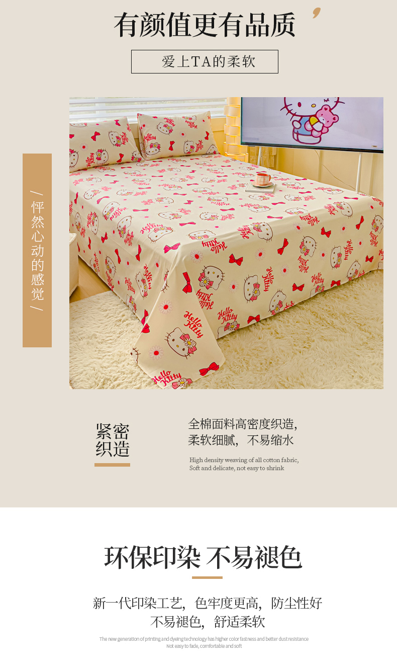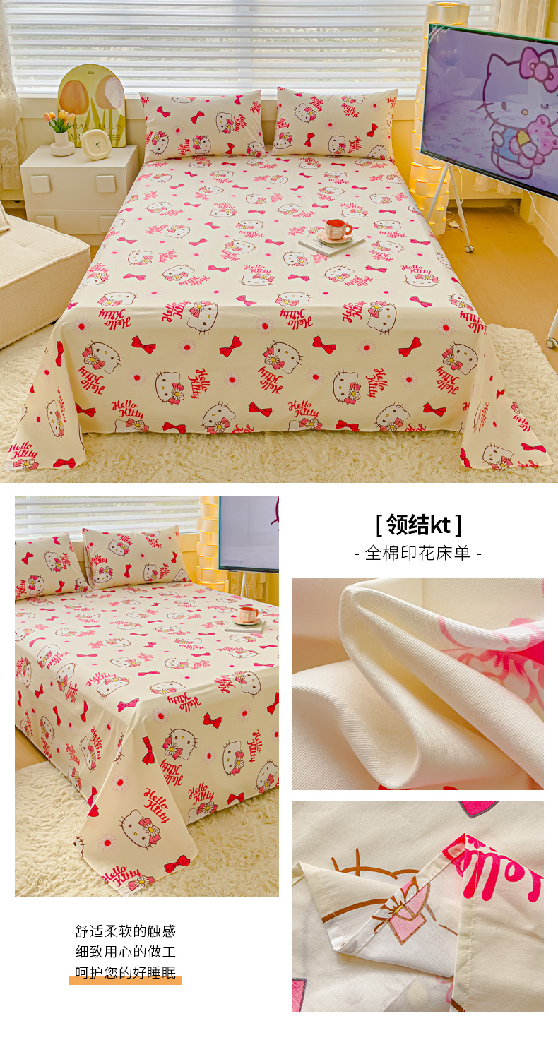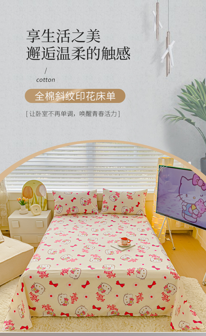 (总)金丝鸟家纺 2025新款三丽鸥系列全棉斜纹13370单品床单,波点美乐蒂,彩虹大耳朵狗,条纹库洛米,晚安kt
