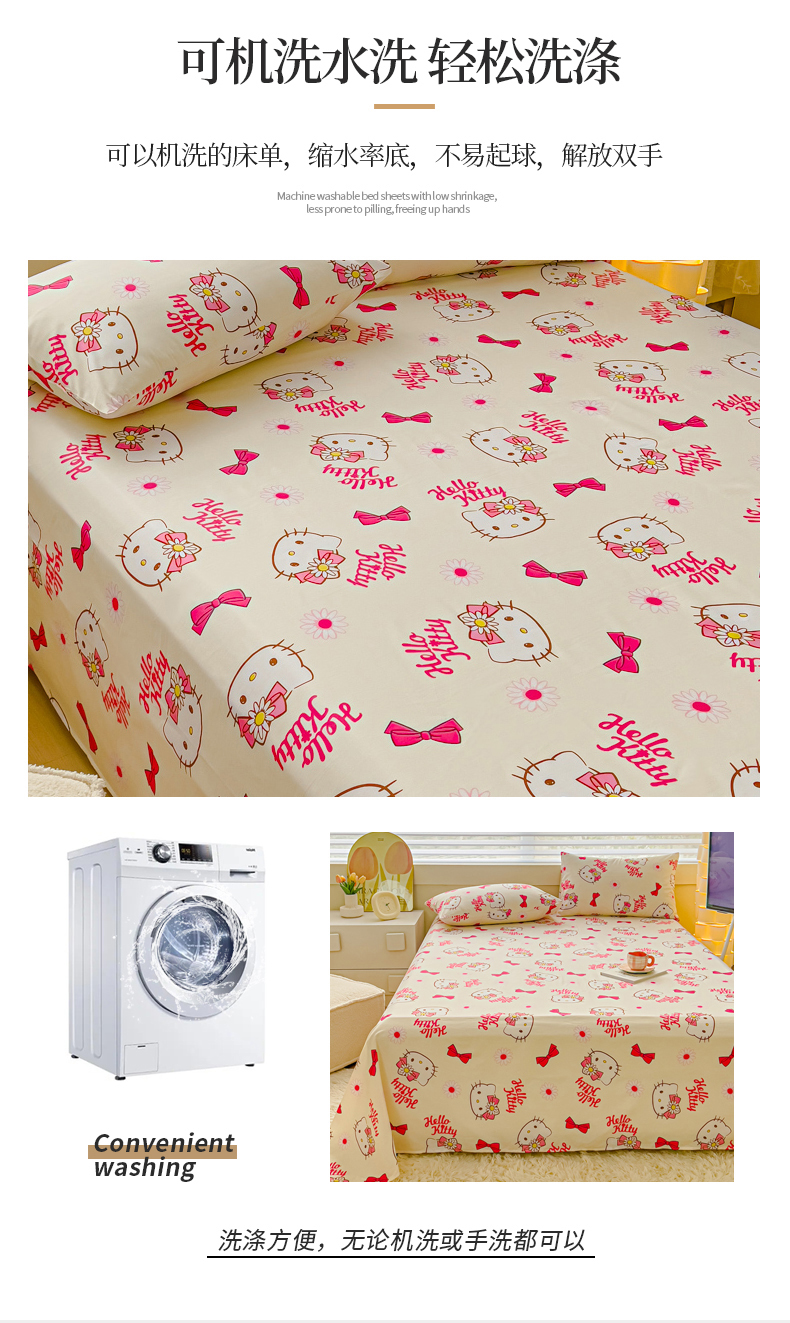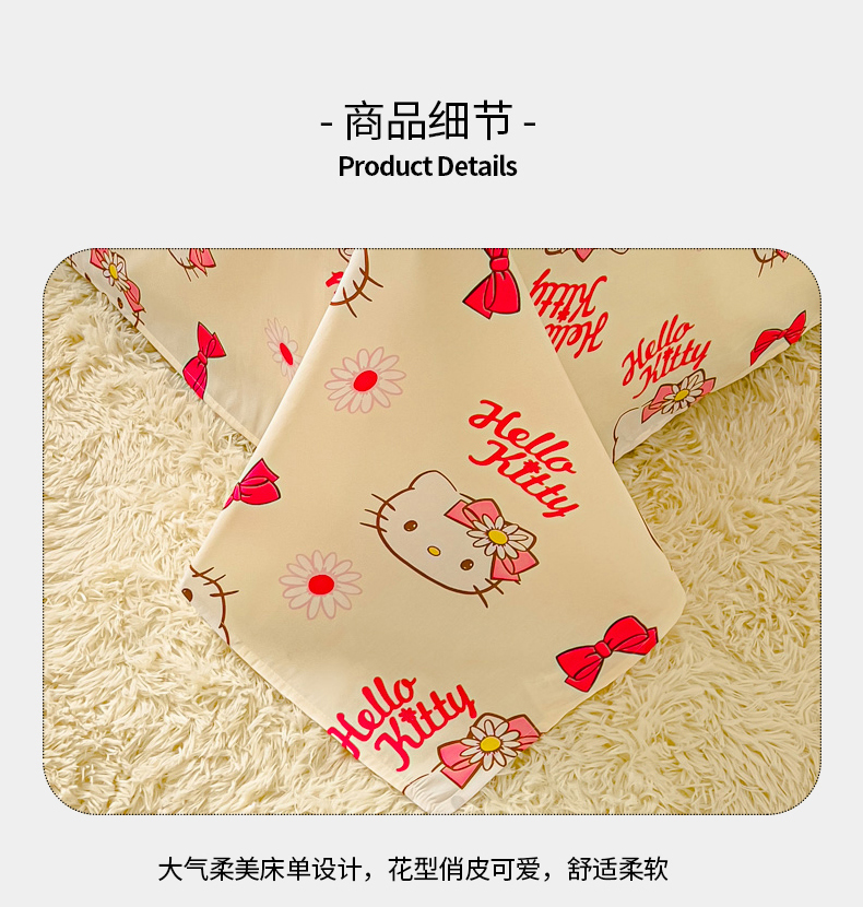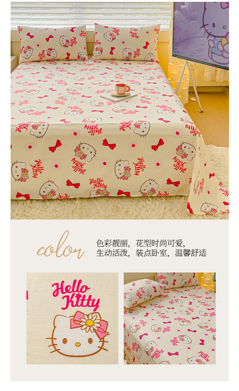商品名称:金丝鸟家纺 2024新款全棉三丽鸥系列床单 领结kt