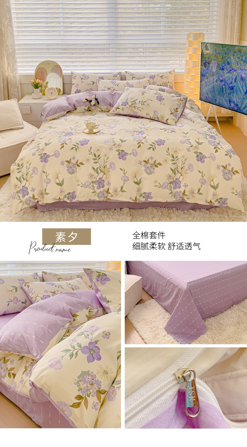 当前位置: 91家纺网 > 商品网购 > 床品套件 > 四件套 > 全棉普通四件套 > 金丝鸟 2024新款全棉可爱卡通四件套 素夕