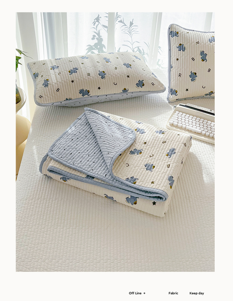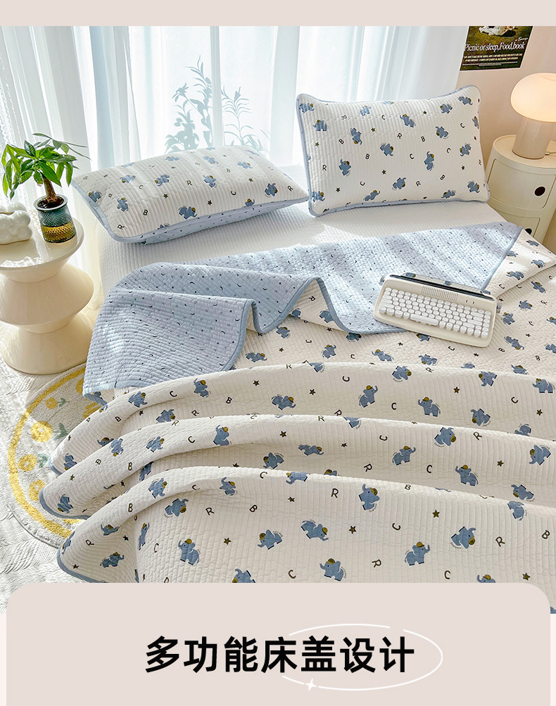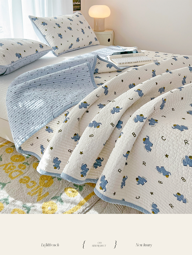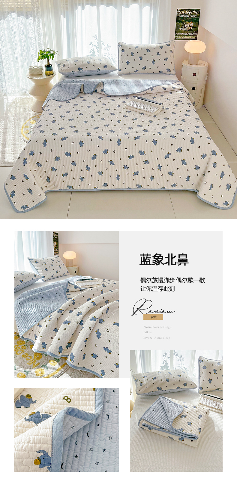 商品名称:茉夕家纺 2024新款纯棉斜纹13372双面纯棉床盖 蓝象北鼻