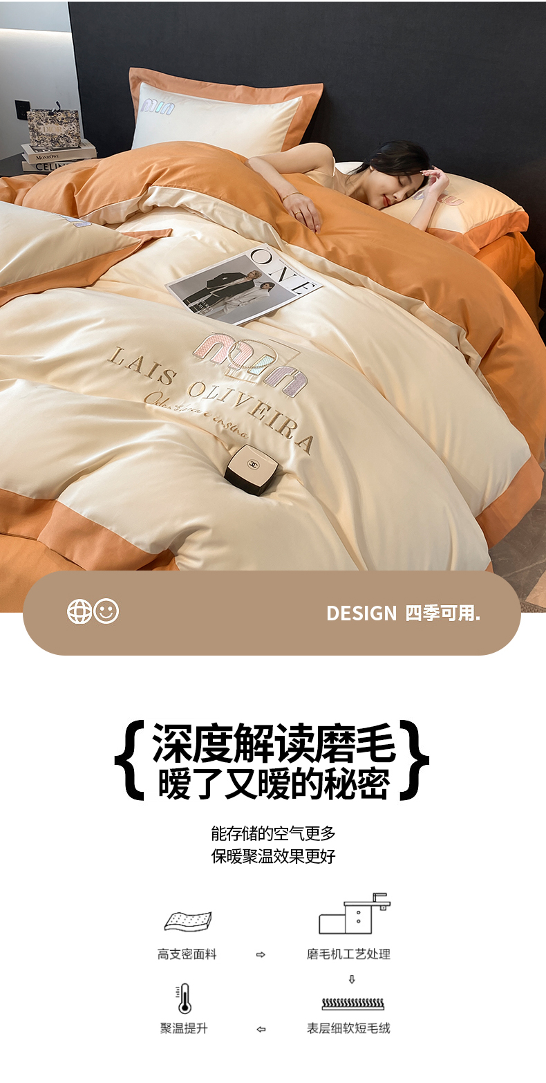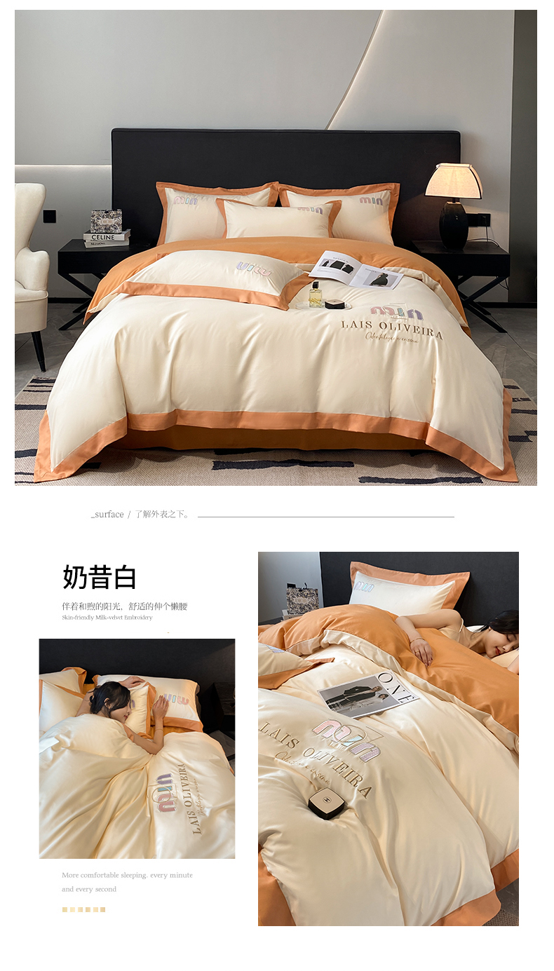 (总)遇见家居生活馆 2025新款A类牛奶绒玛利亚绒宽边四件套(控价:标准178,加大188,床笠款183),靓粉+星辰灰,丁香紫+星辰灰,清澈蓝+星辰灰,奶昔白+亚麻驼,经典灰+香槟,宾利蓝+星辰灰