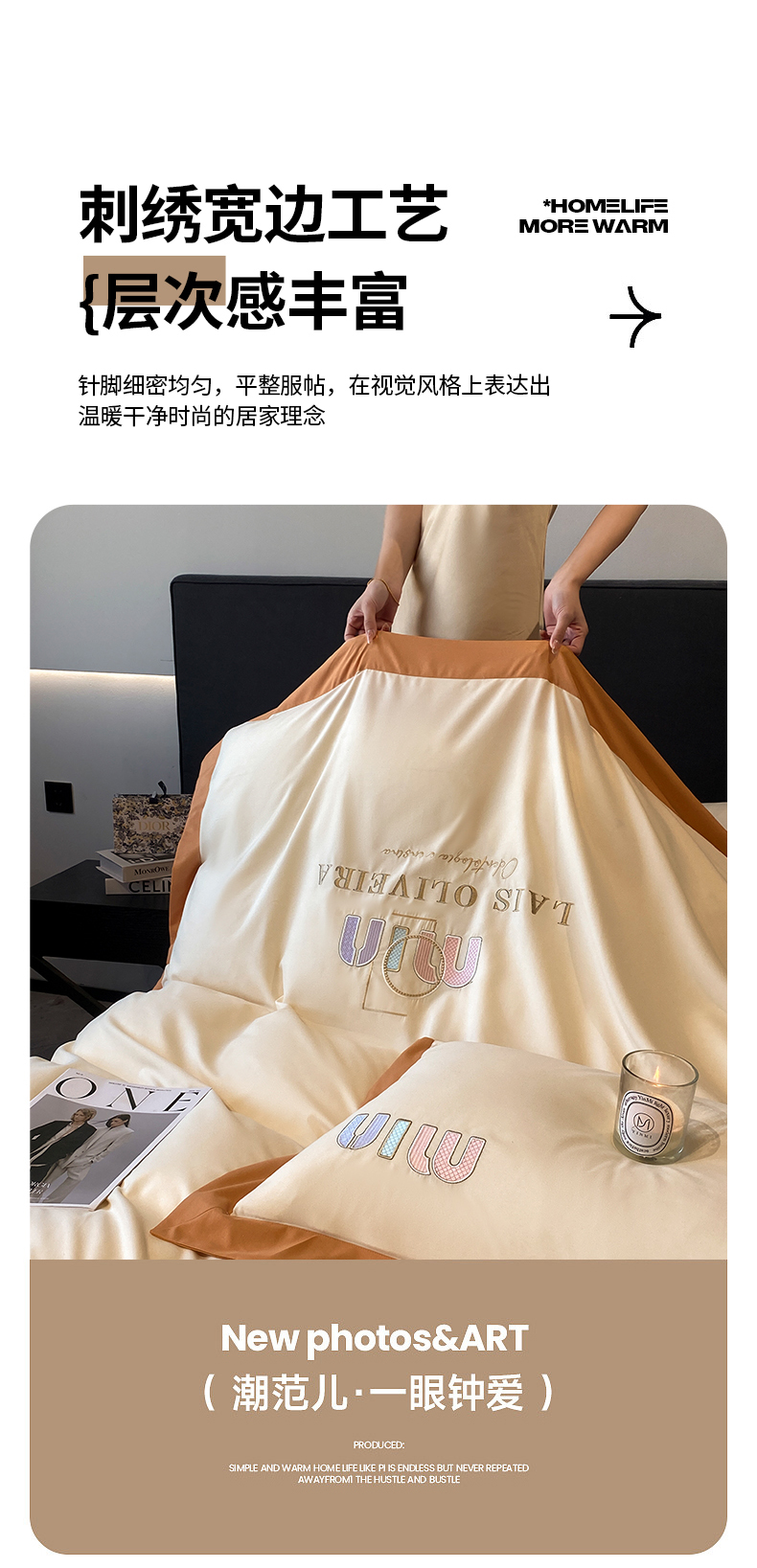 商品名称:遇见家居生活馆 2024新款亲肤磨毛刺绣四件套-克洛伊 克洛伊-奶昔白