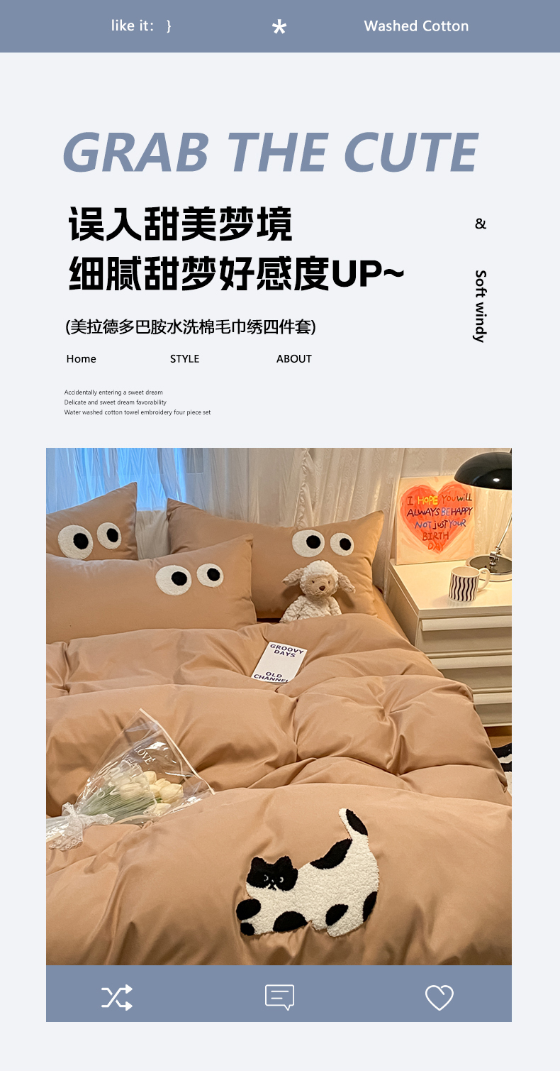 (总)N先生 2024新款美拉德多巴胺水洗棉毛巾绣四件套-猫咪系列