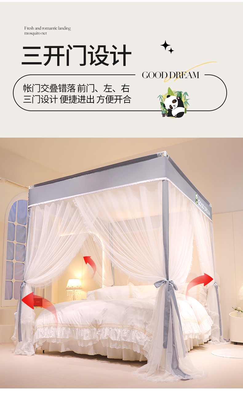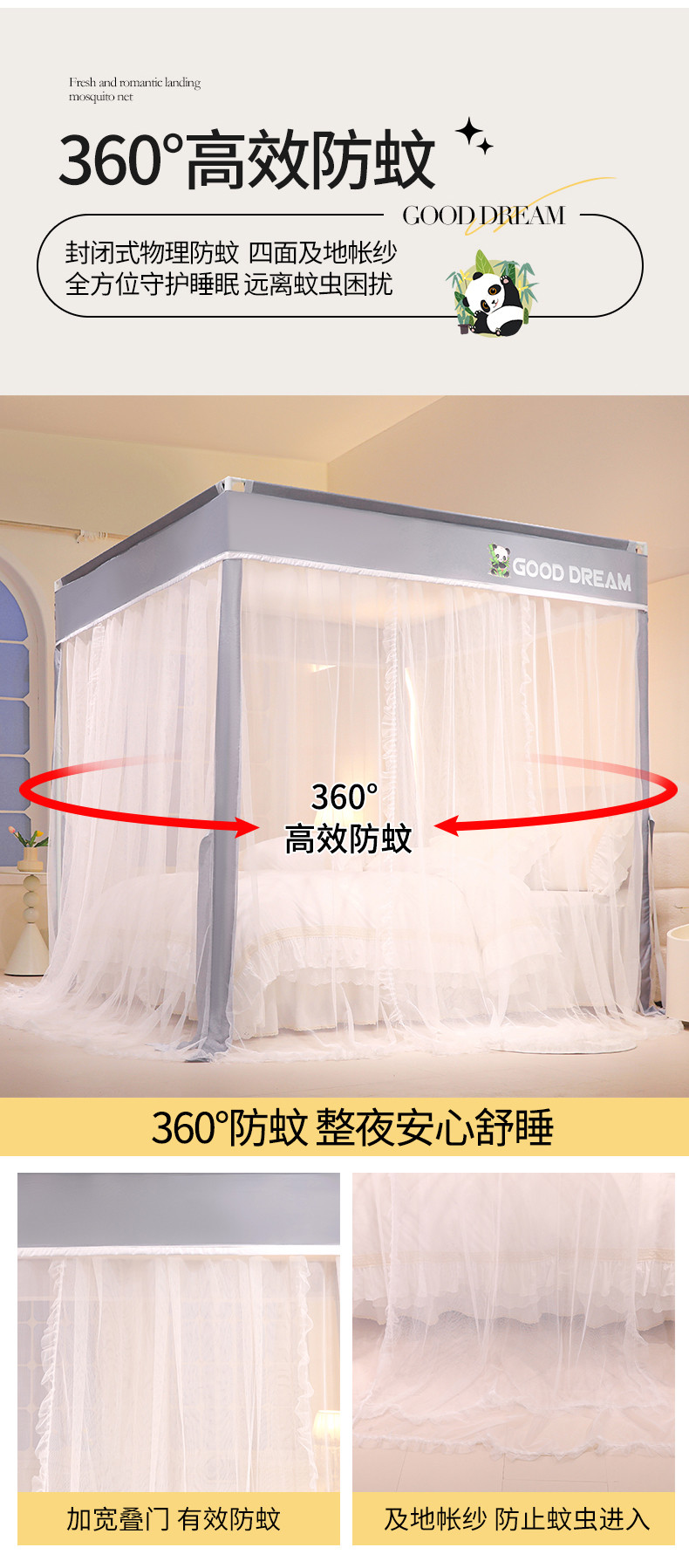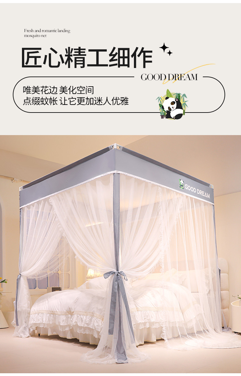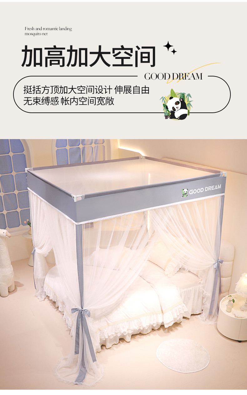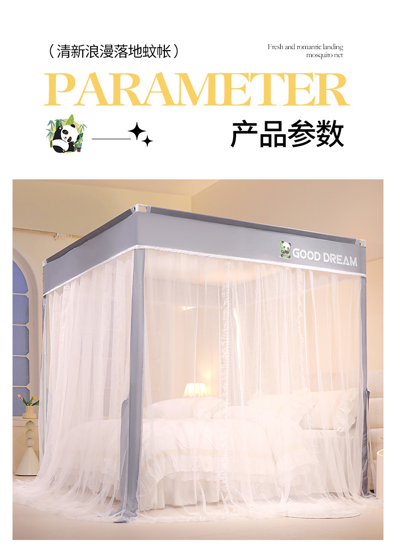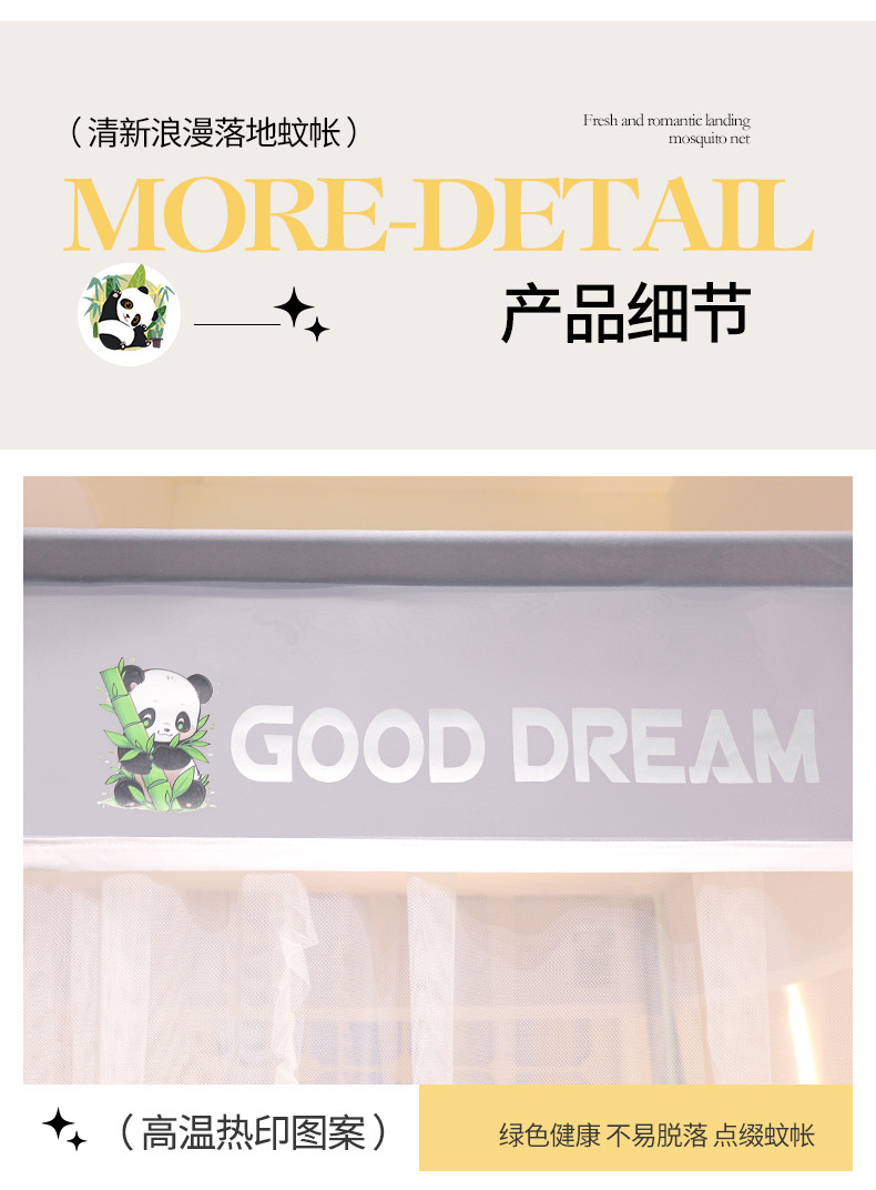 (总)迪凡保罗 2025新款2408熊猫烫画外穿杆落地宫廷蚊帐,浅蓝色,深灰色,太湖绿,驼色,樱花粉,月光灰