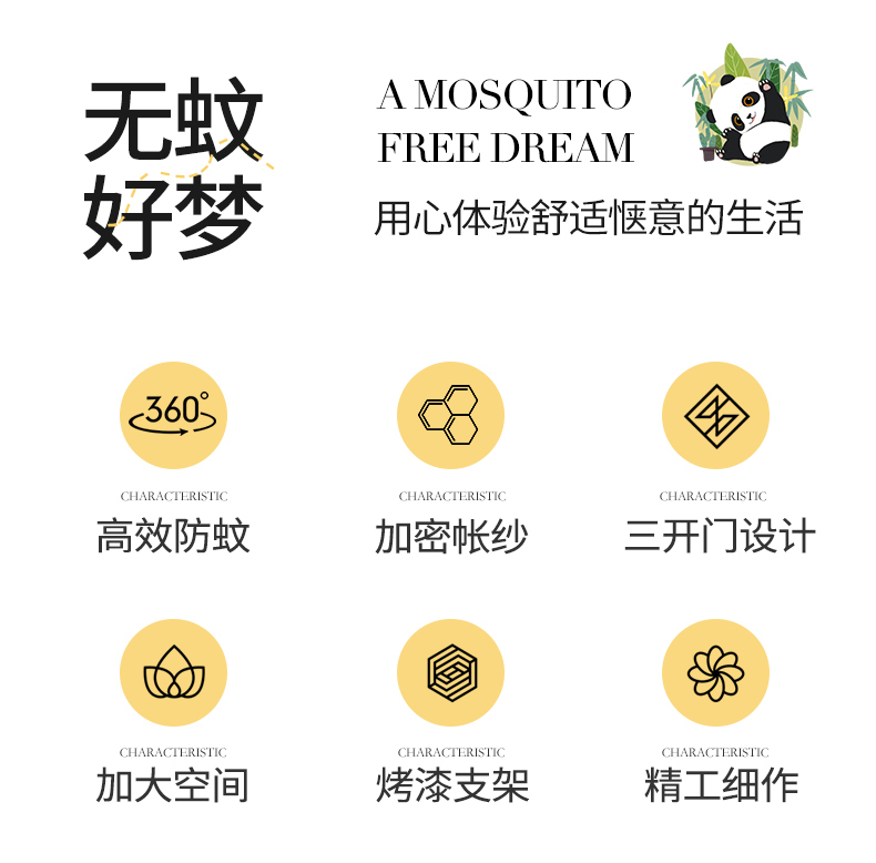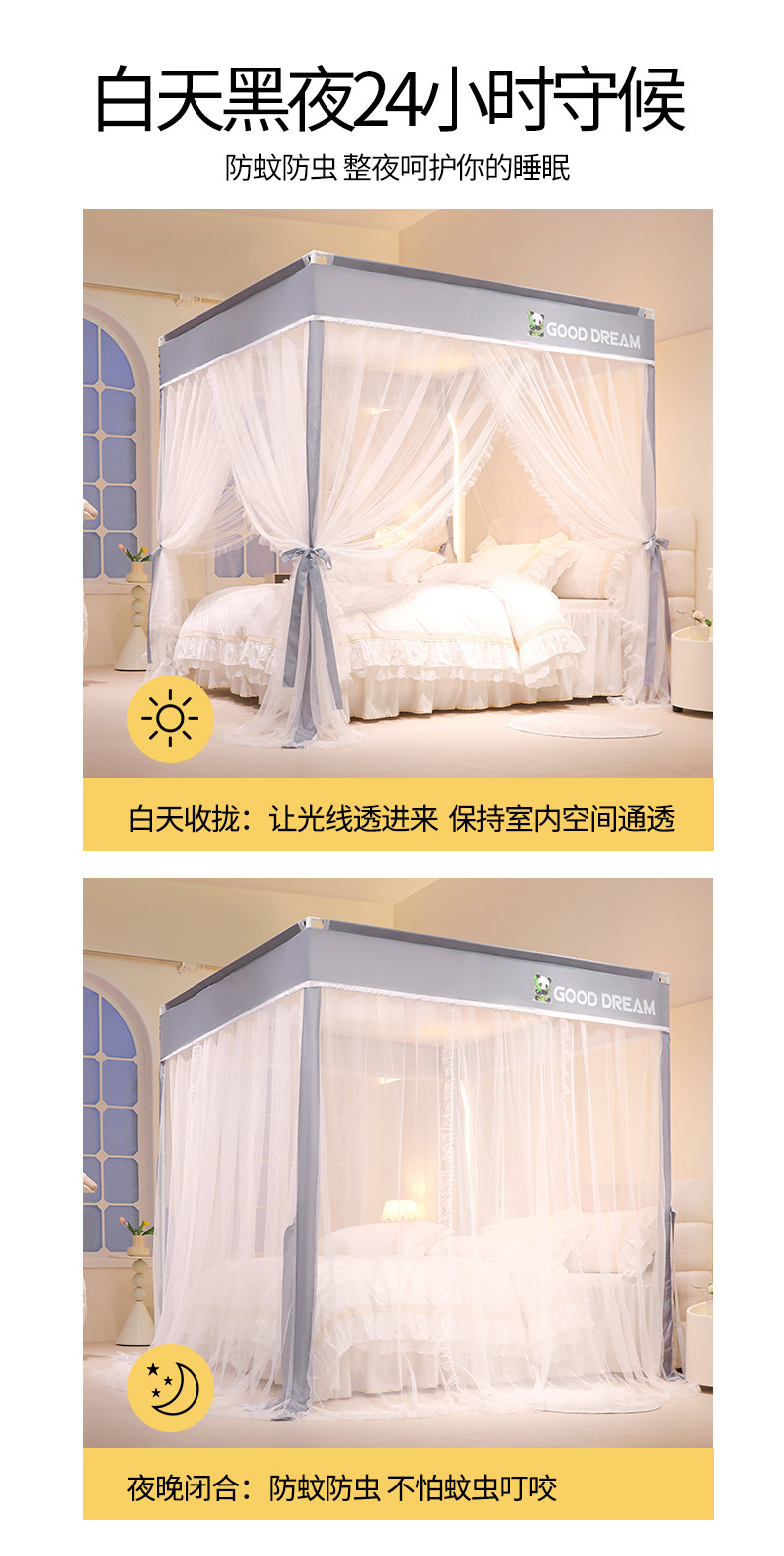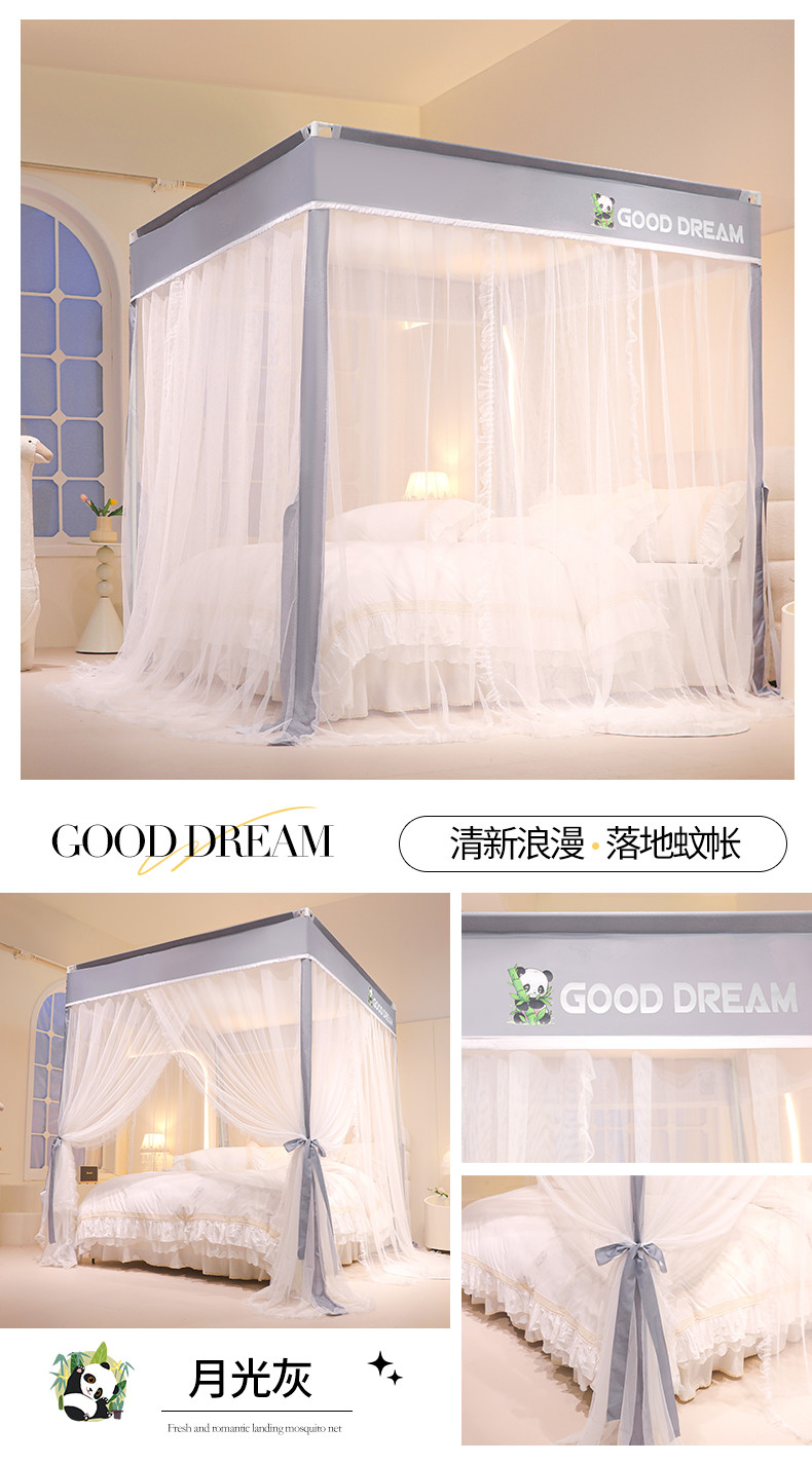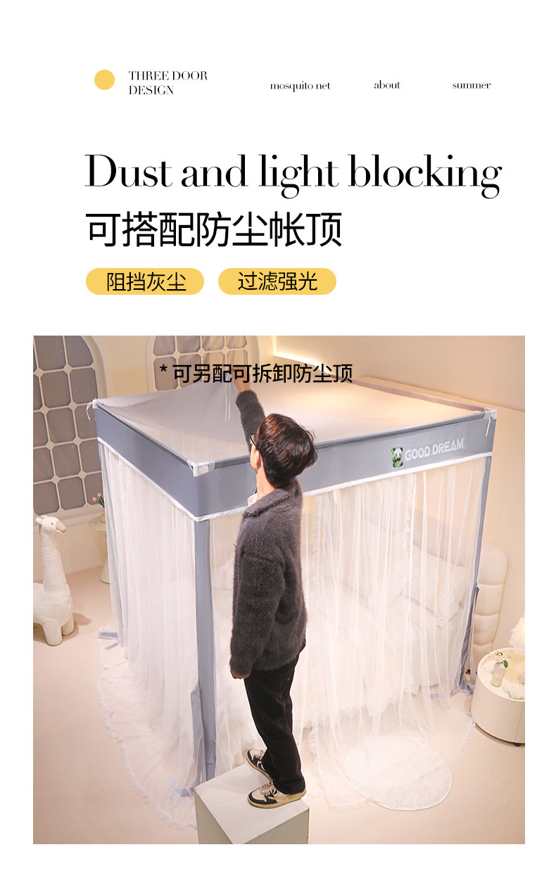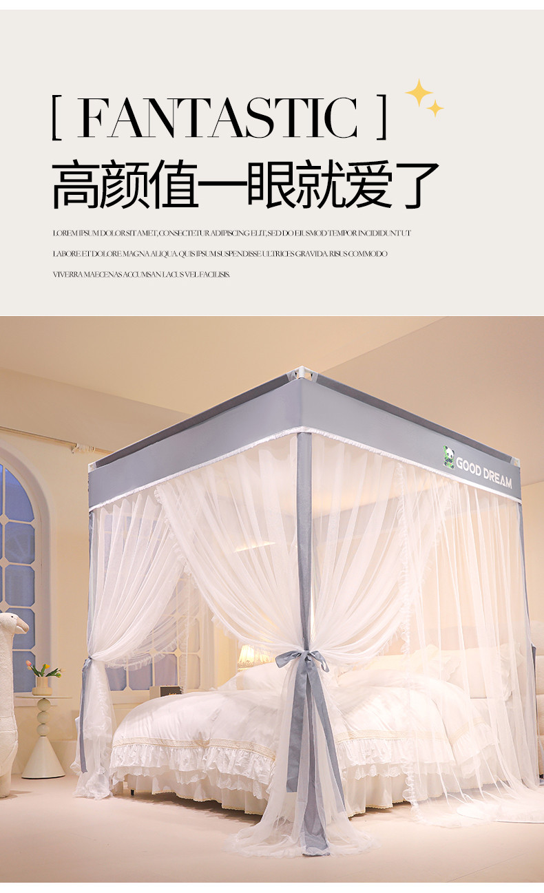 (总)迪凡保罗 2025新款2408熊猫烫画外穿杆落地宫廷蚊帐,浅蓝色,深灰色,太湖绿,驼色,樱花粉,月光灰