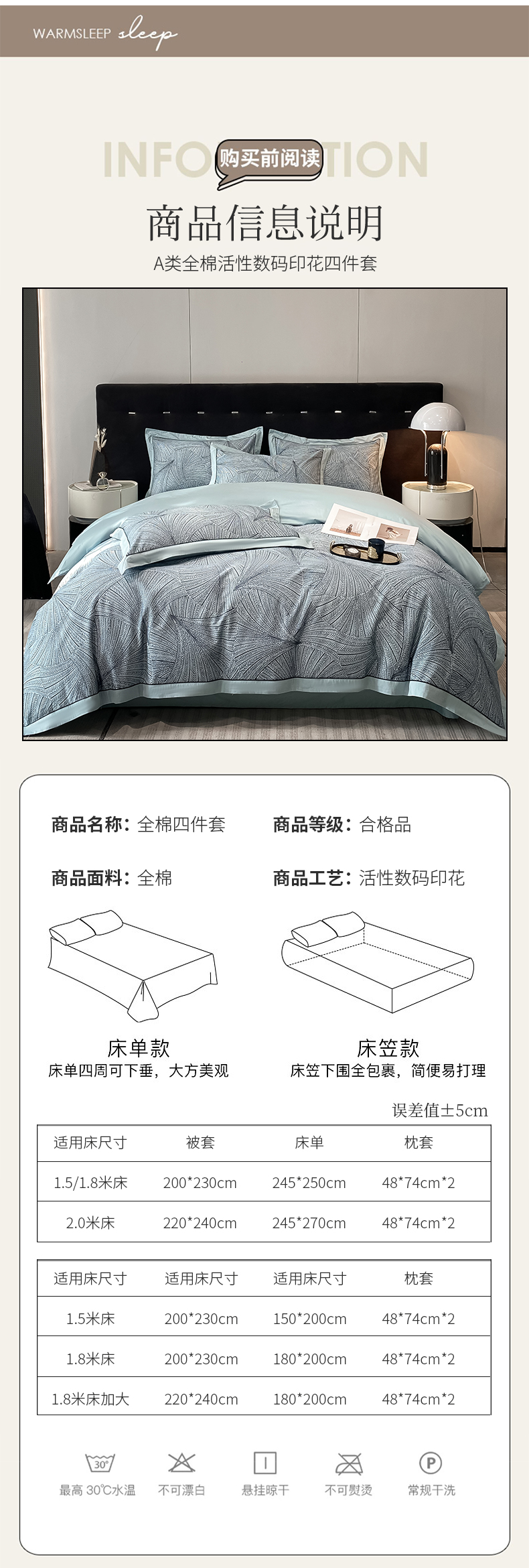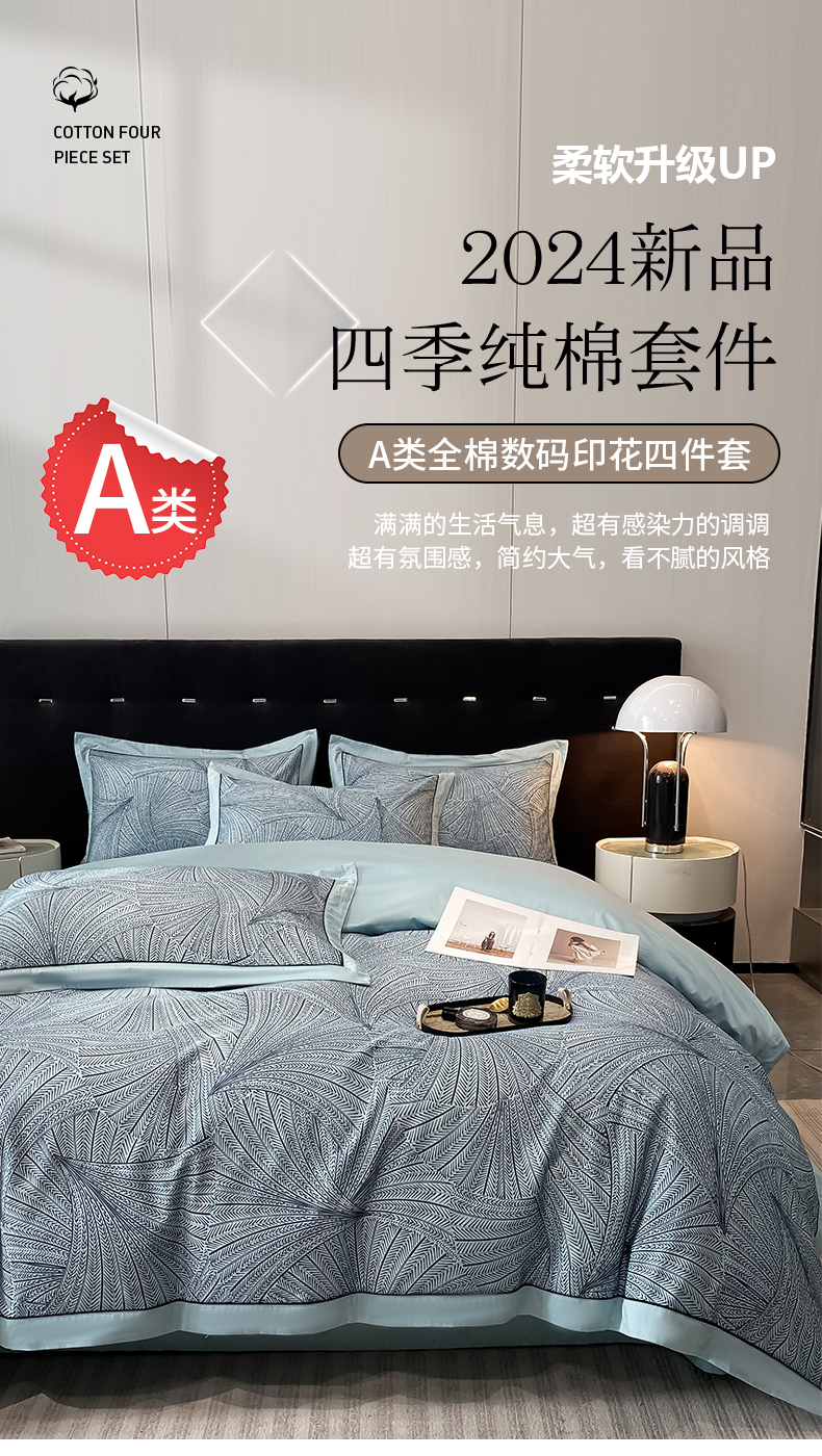 (总)家居1号家纺 2026新款A类50双股斑马纹全活性活性数码四件套-卡森(活动券后价不得低于279),卡森-高级灰,卡森-荷粉,卡森-温馨蓝,卡森-香槟金