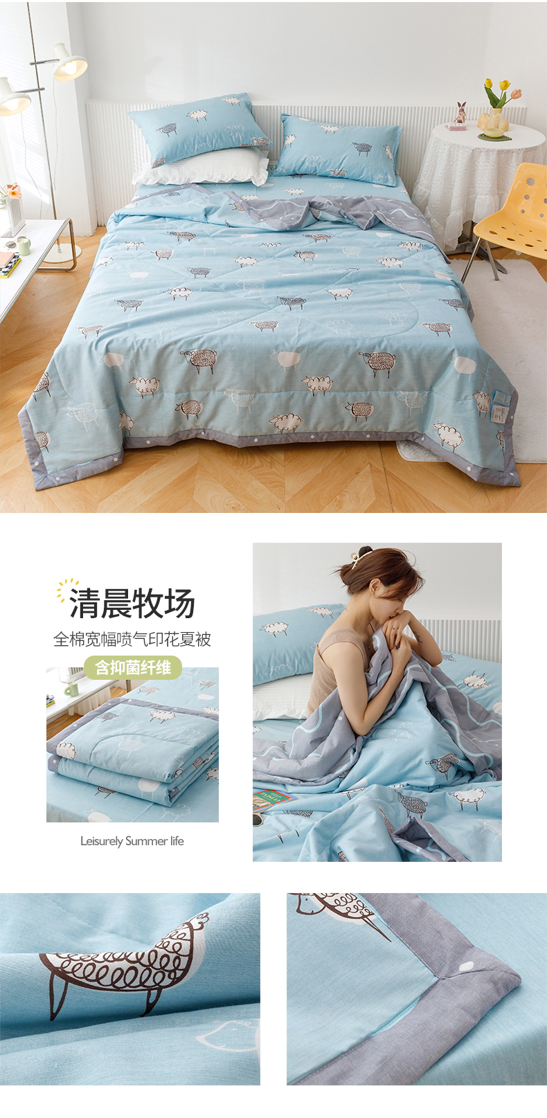 莱宁被业 2024新款全棉宽幅喷气印花夏被 清晨牧场