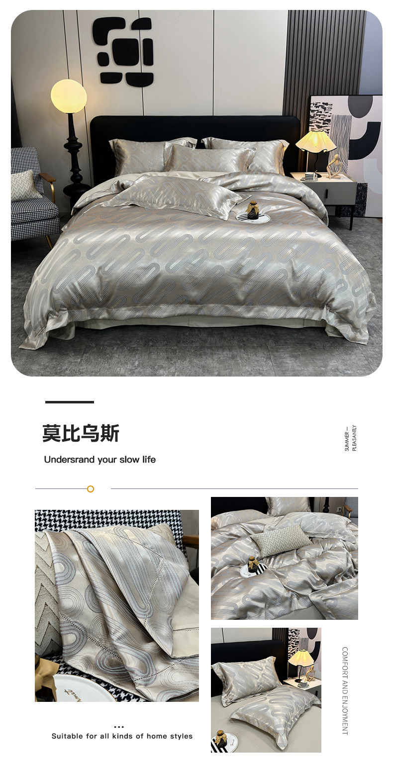 商品名称:三沁2024网红直播爆款全棉高精密色织贡缎提花镂空系列四件套 莫比乌斯