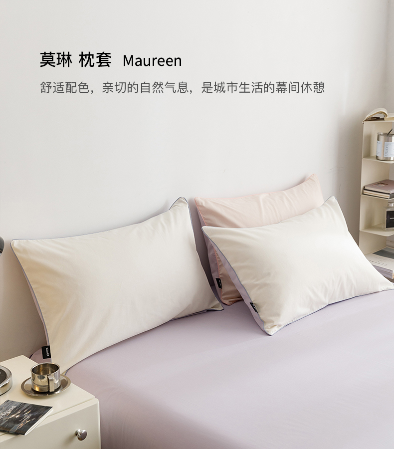 卡姿家纺 2024春夏纯色双拼嵌绳款单枕套—莫琳 莫琳 枕套白紫