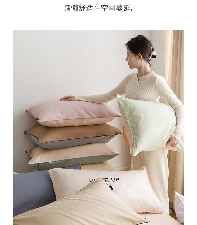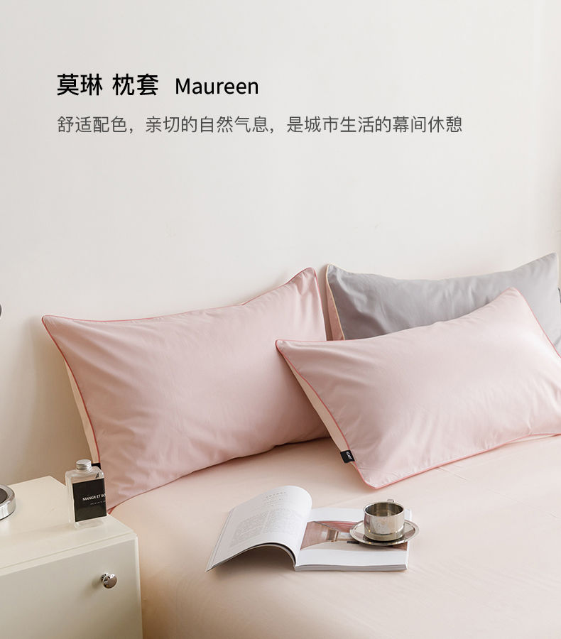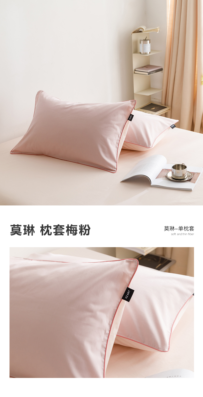 商品名称:卡姿家纺 2024春夏纯色双拼嵌绳款单枕套—莫琳 莫琳 枕套梅粉