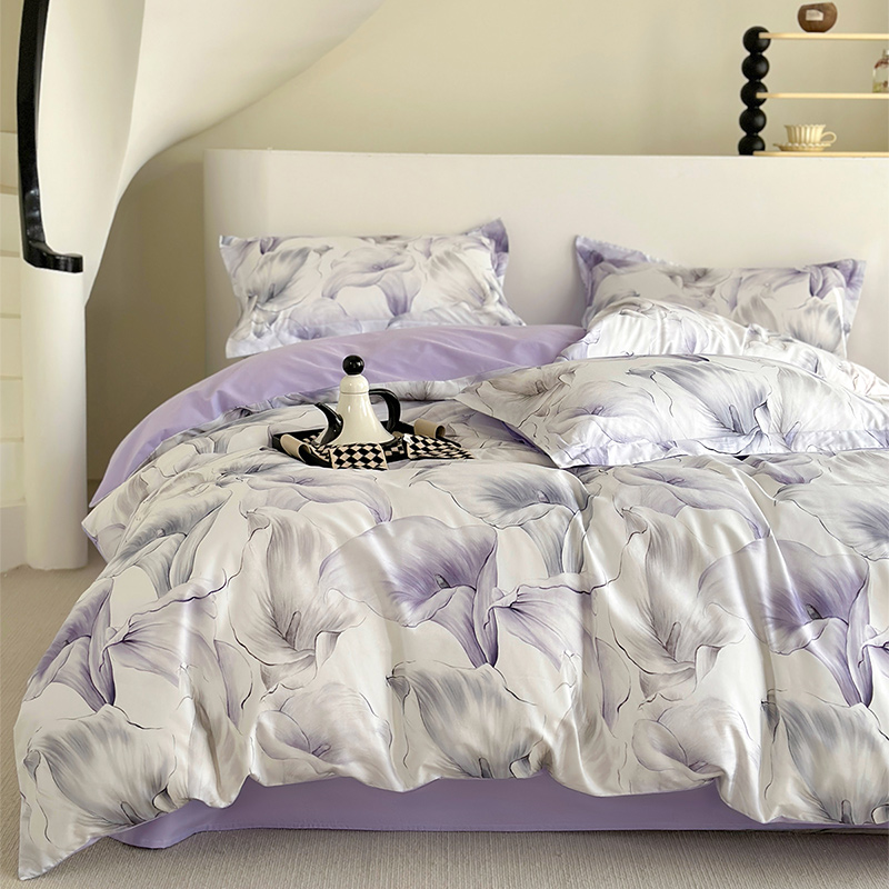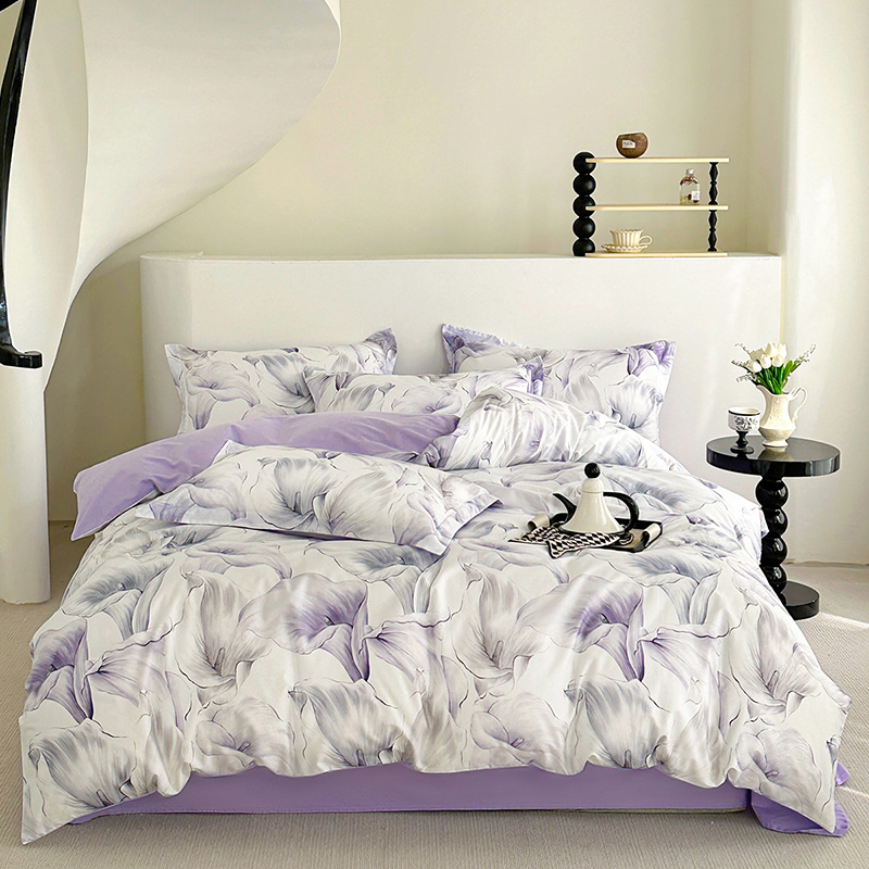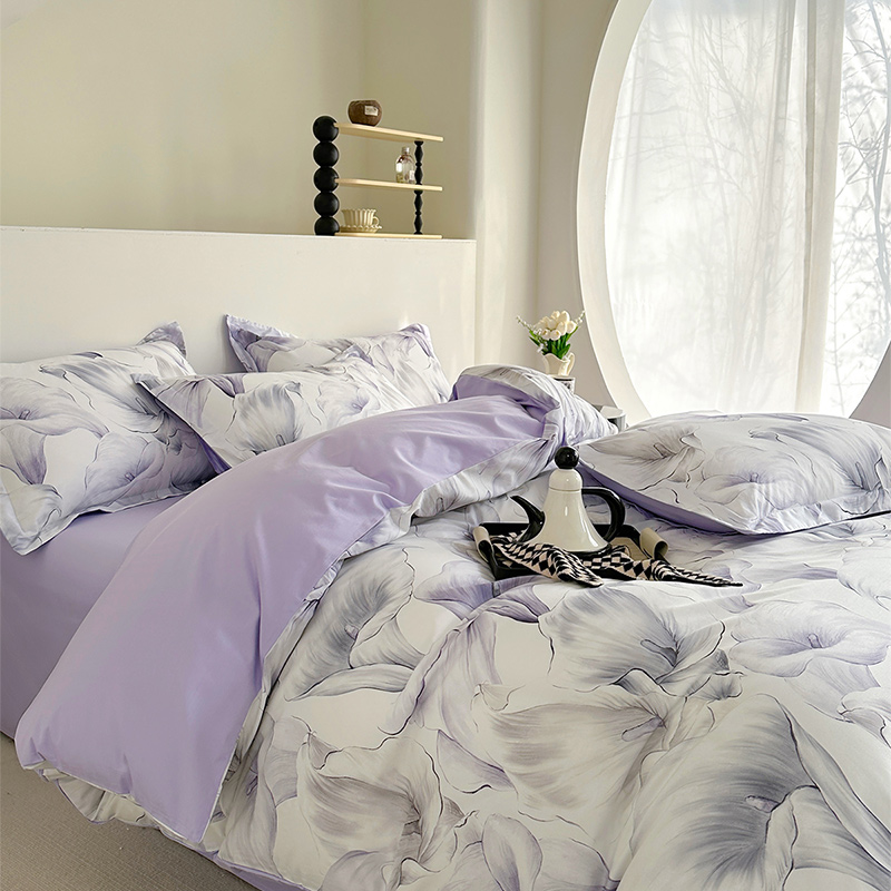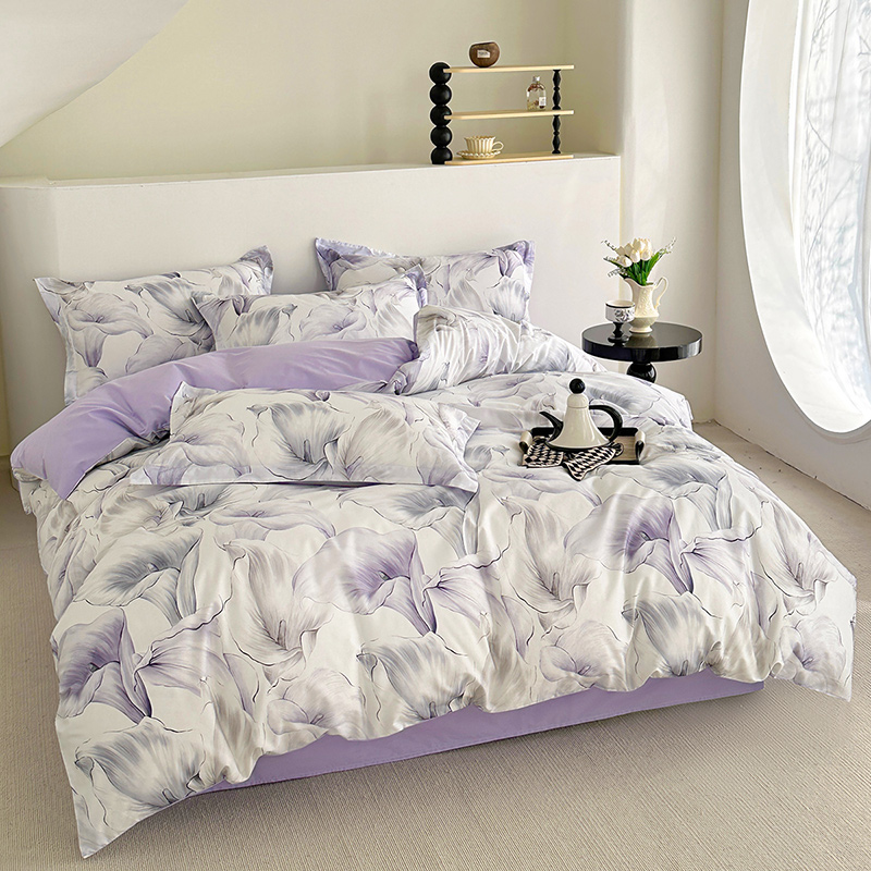 商品名称: 元元被芯 2024新款全棉长绒棉数码印花四件套全棉四件套纯棉四件套 步步生莲-紫