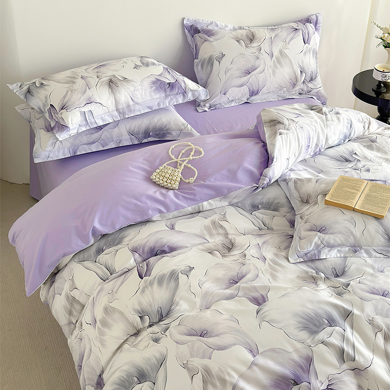 元元被芯 2024新款全棉长绒棉数码印花四件套全棉四件套纯棉四件套 步步生莲-紫