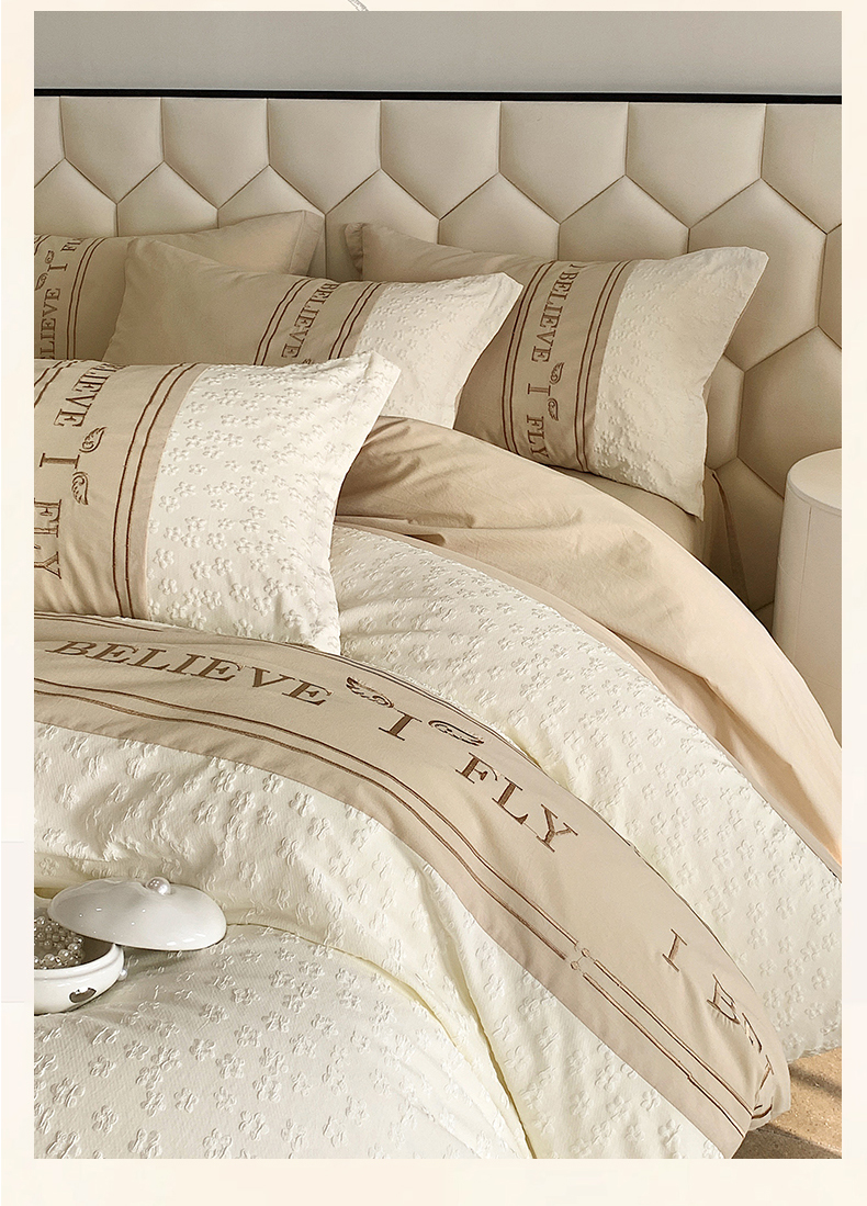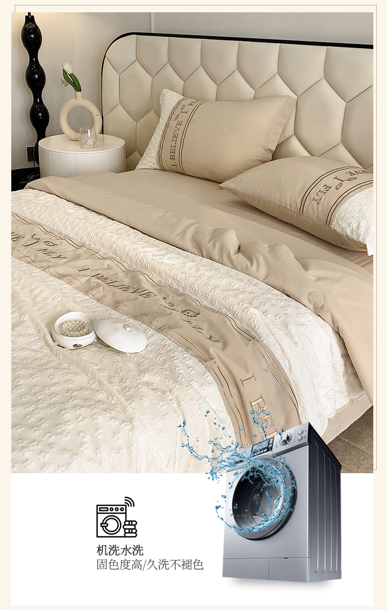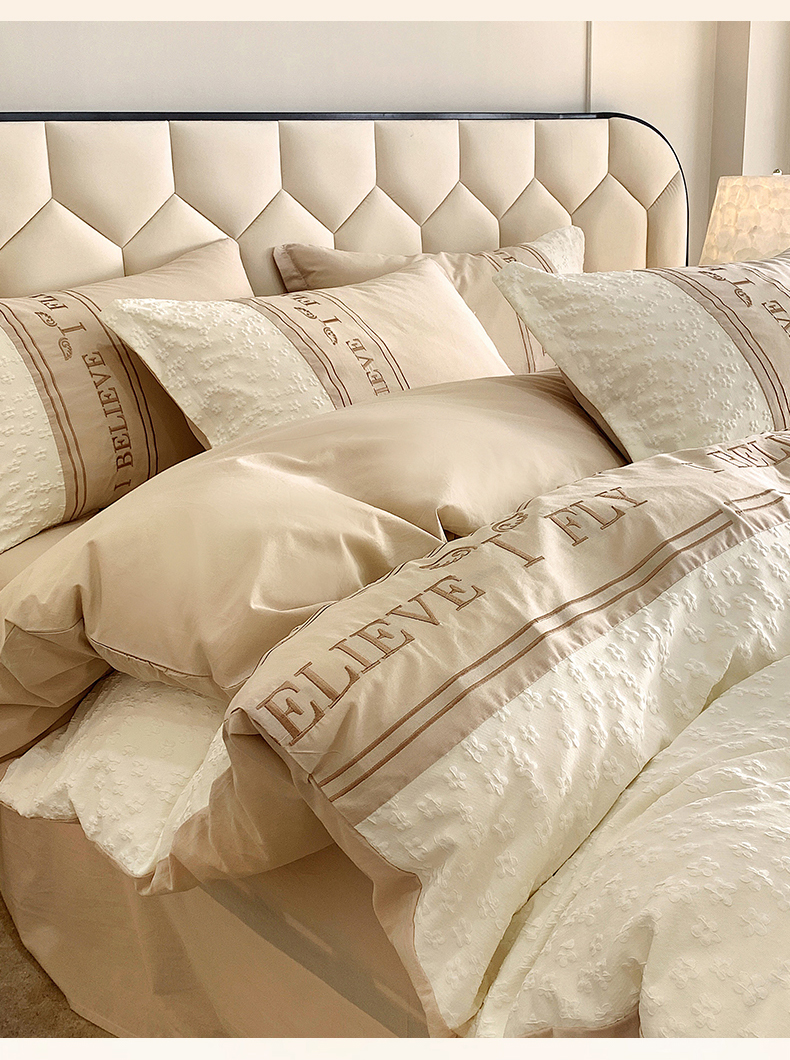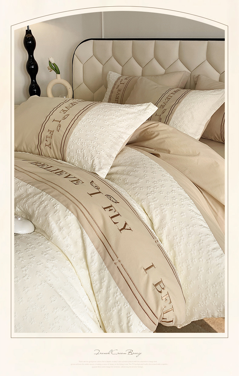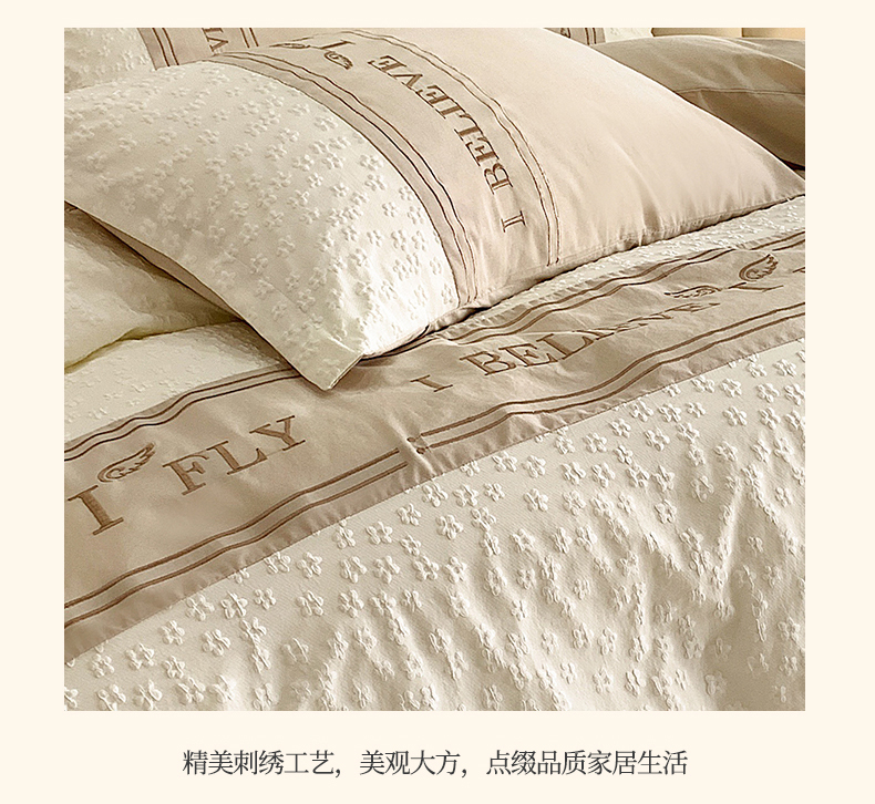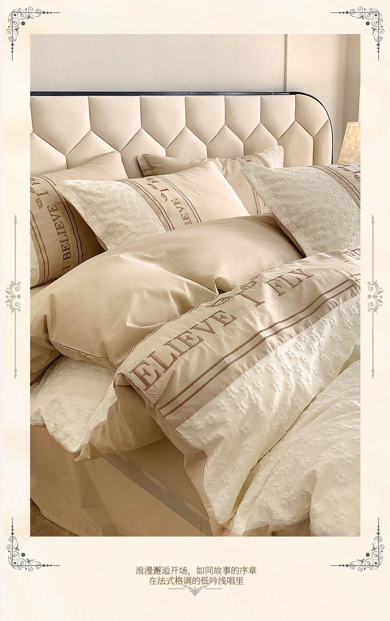 商品名称:换种生活 2024新款全棉活性印染刺绣四件套-法式小香风系列 泡芙奶咖