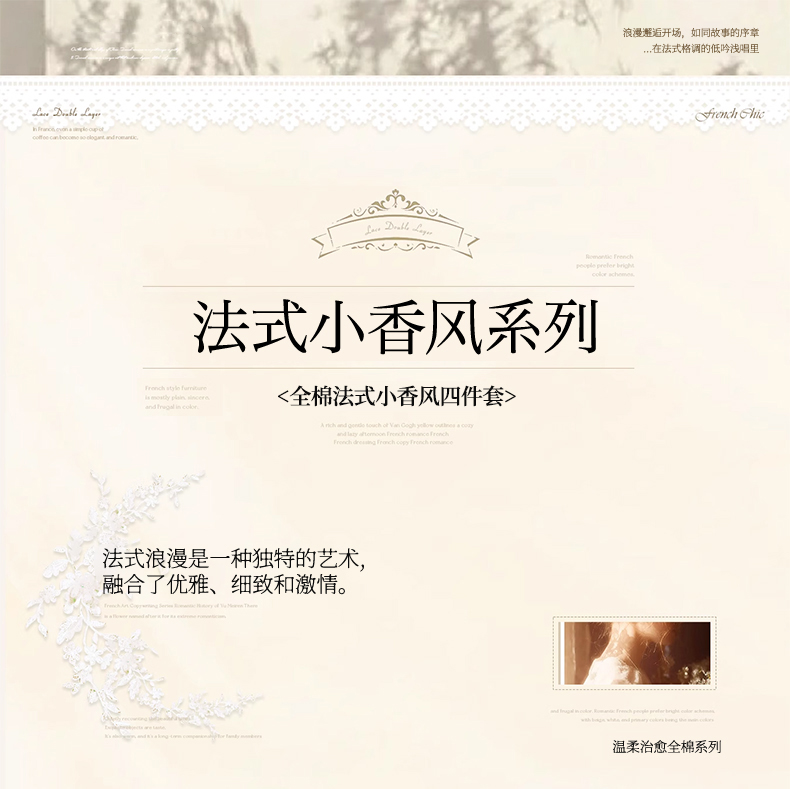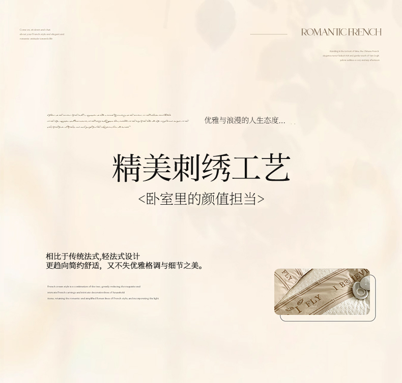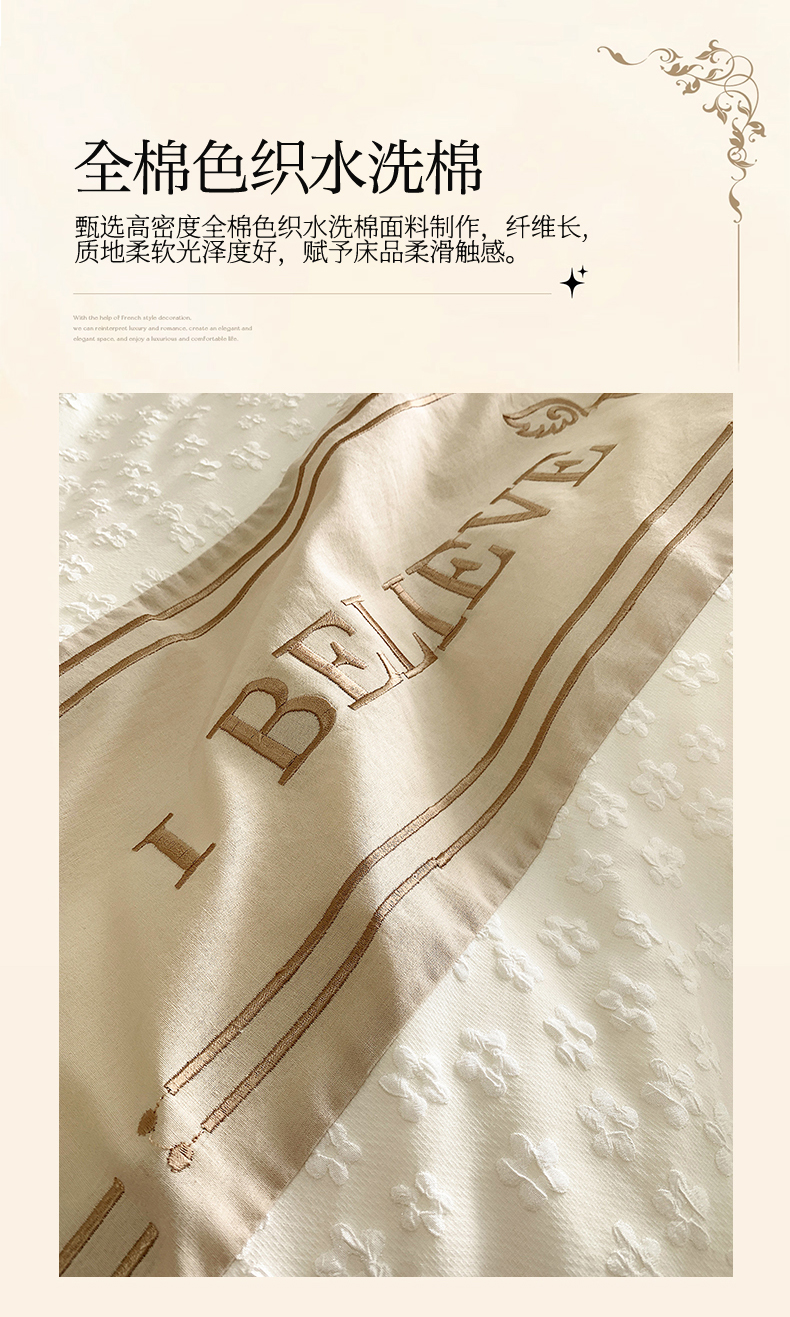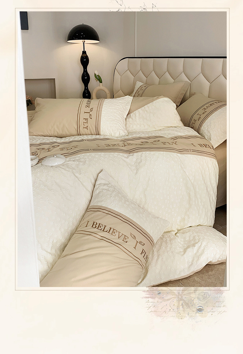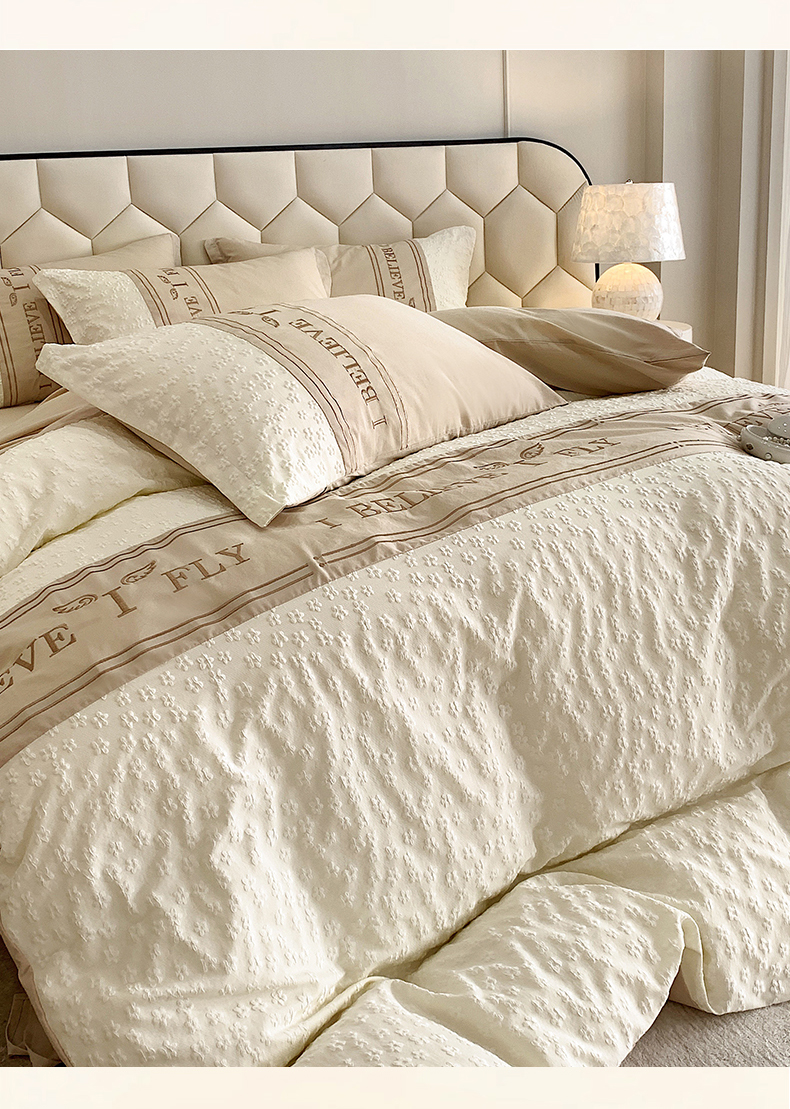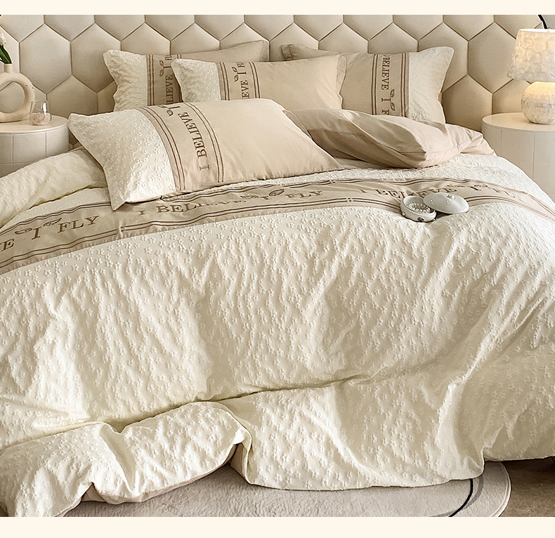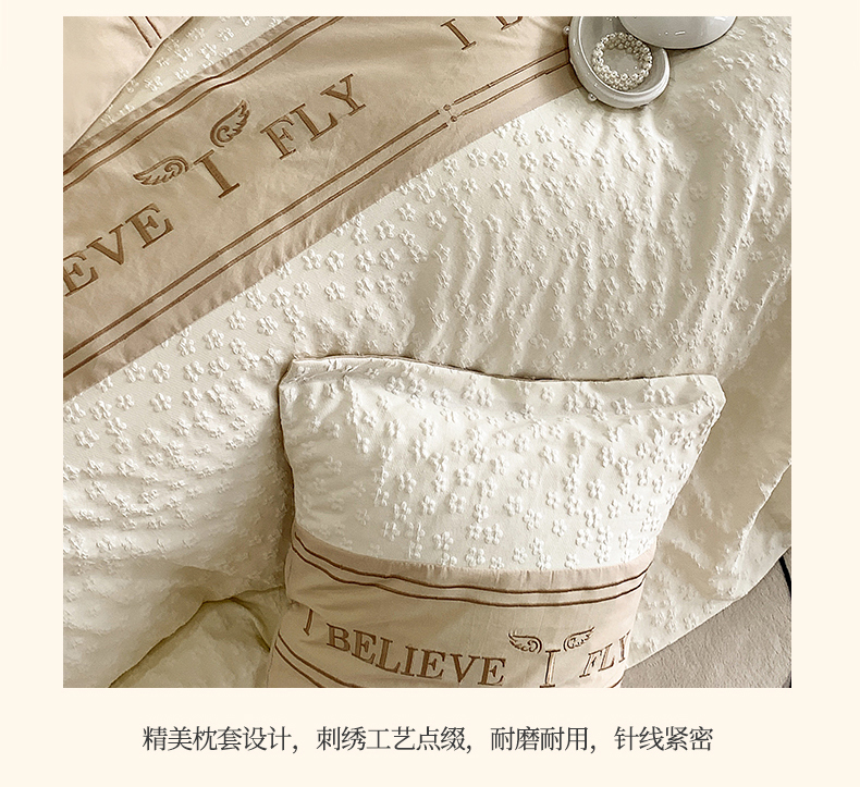 商品名称:换种生活 2024新款全棉活性印染刺绣四件套-法式小香风系列 泡芙奶咖