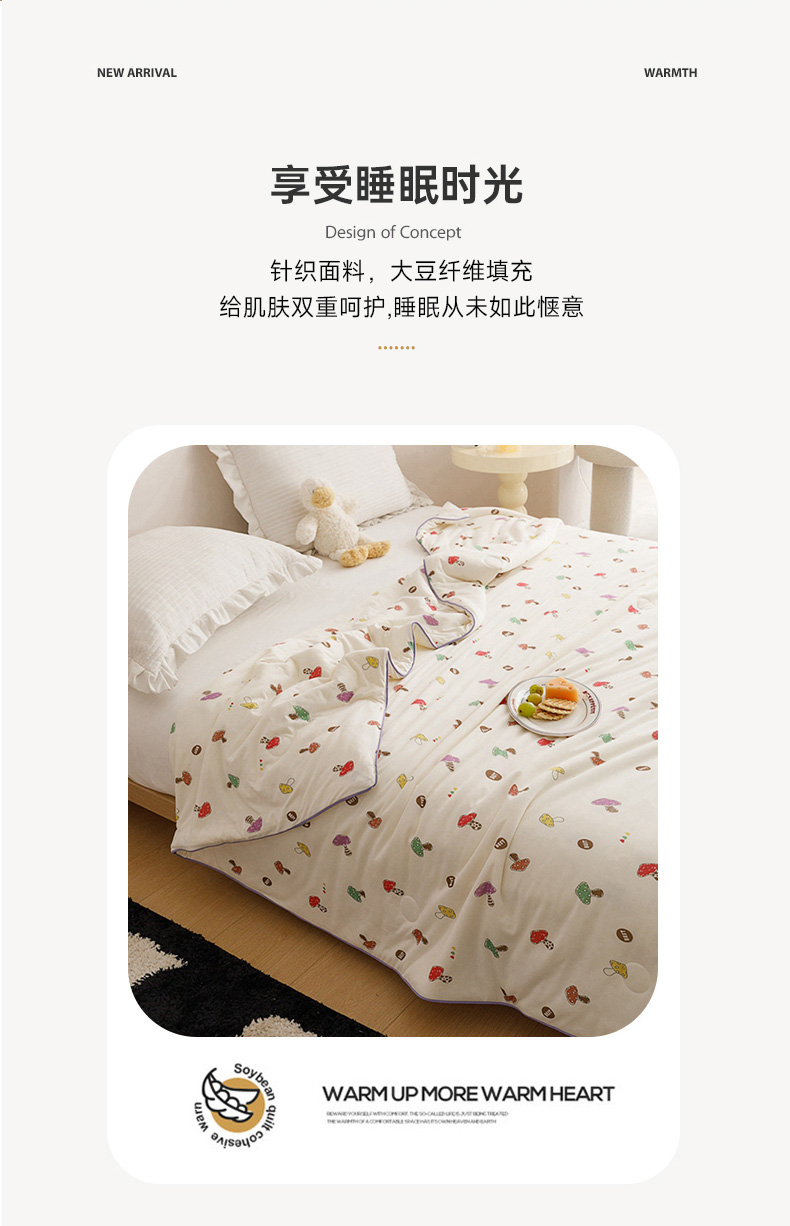 优被业 2024新款针织棉大豆纤维被 多彩蘑菇